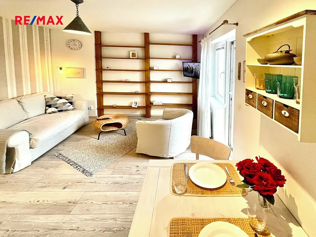 Exkluzivní nabídka pronájmu krásného, zcela vybaveného bytu 2+kk o výměře 32 m2 + terasa 16 m2, který se nachází ve 4. patře cihlového domu bez výtahu.
