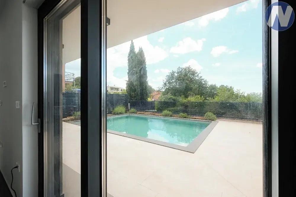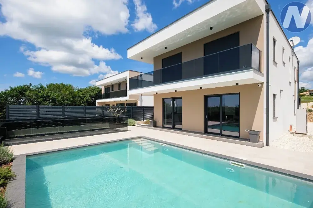 Dům se nachází v lokalitě půvabného městečka Svetvinčenat. Dům je nově postaven v moderním stavebním stylu s velkými prosklenými stěnami, kterými proniká hojné světlo. Skládá se ze vstupní haly, kuchyně, jídelny, toalety, technické místnosti, obývacího pokoje s krbem a přístupu na venkovní terasu, kde je venkovní bazén se sluneční terasou pro relaxaci a zábavu. Vnitřní schodiště zároveň spojuje 1. patro, kde jsou 4 prostorné a světlé ložnice se 4 moderními a plně vybavenými koupelnami.