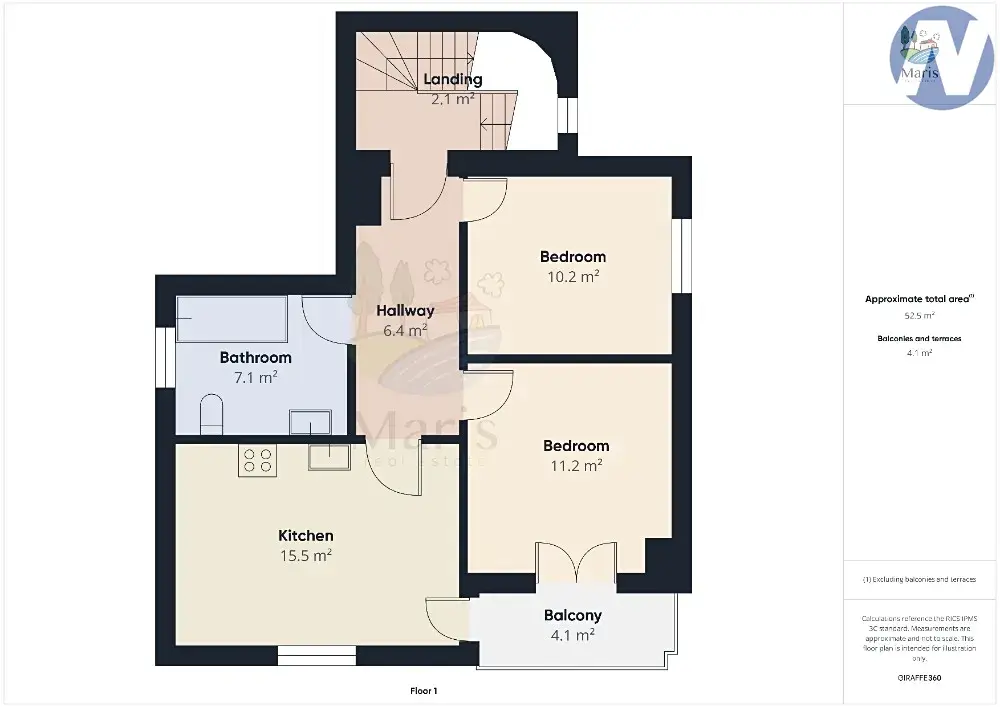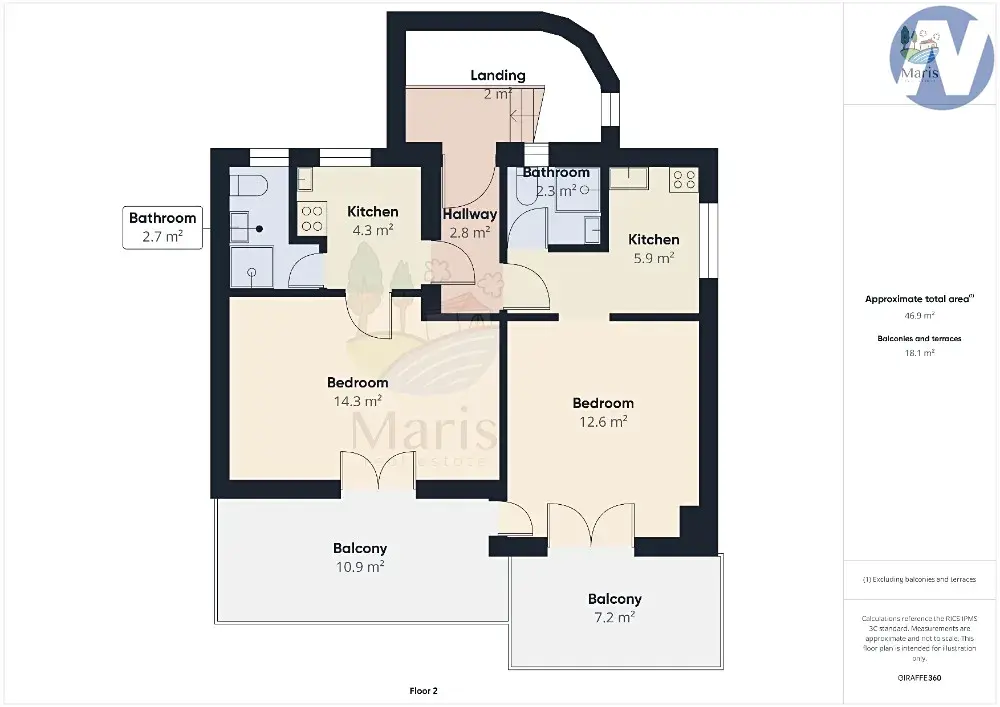 Druhé patro obsahuje dva, každý s jednou ložnicí a vlastním balkonem.