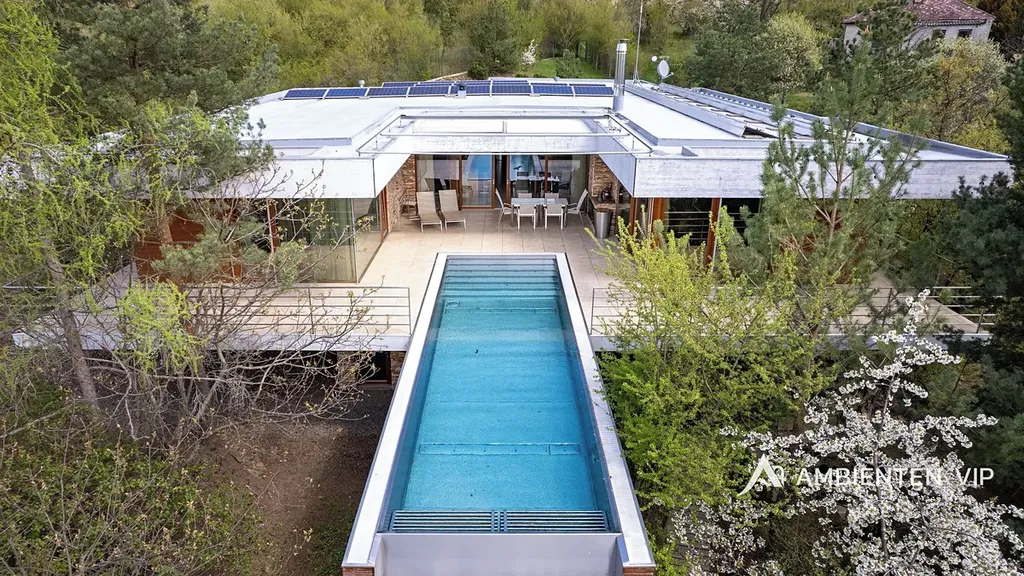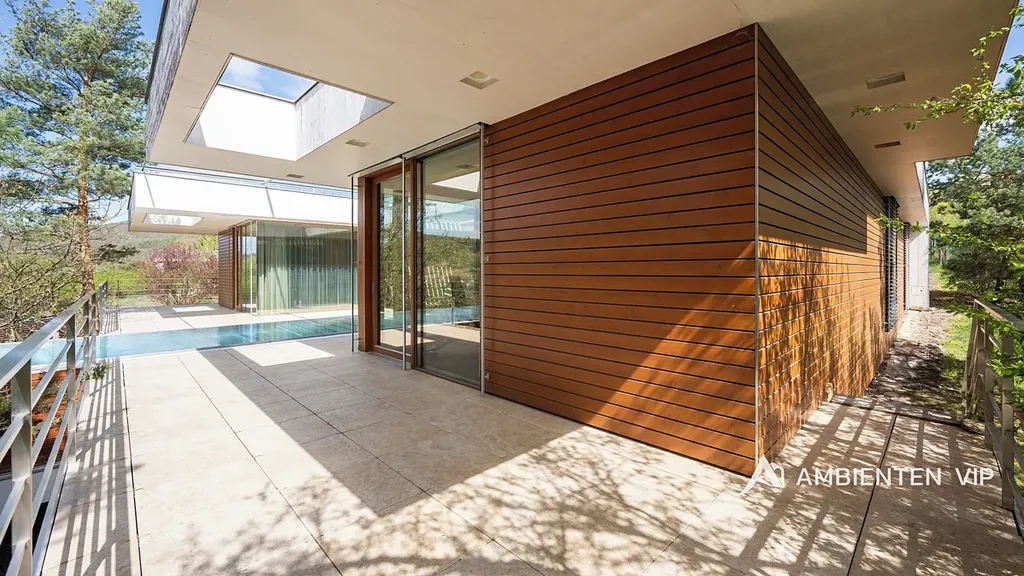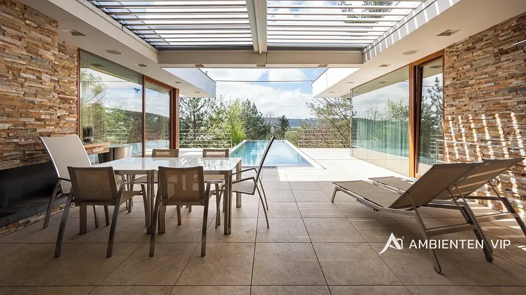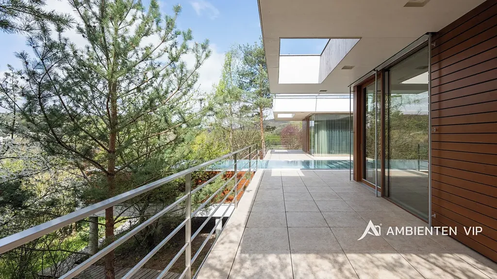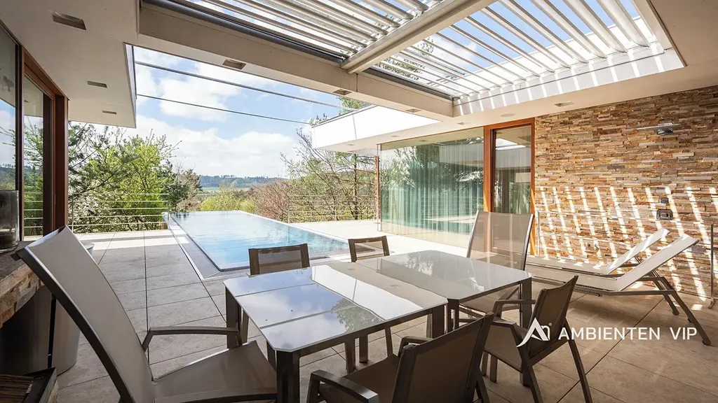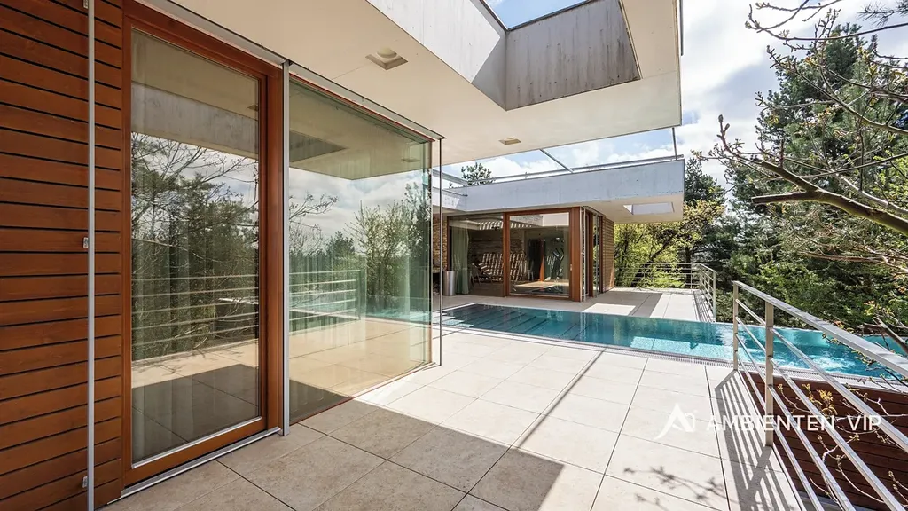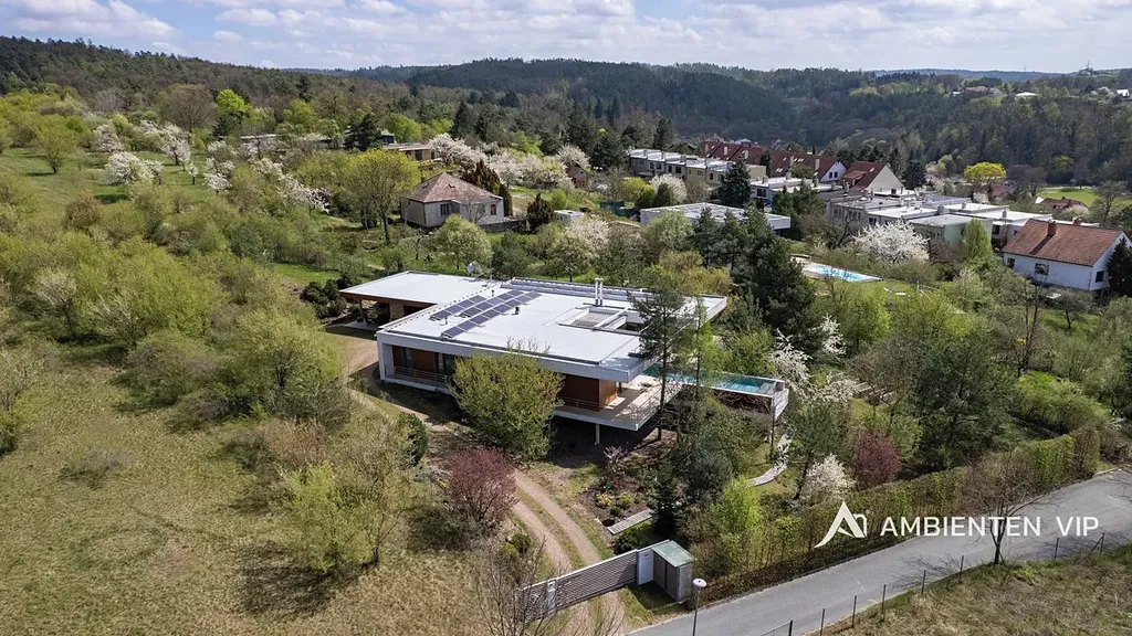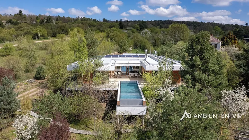 AMBIENTEN VIP si vám dovoluje výhradně nabídnout k prodeji luxusní samostatně stojící vilu v obci Lelekovice severně od Brna. Nemovitost je v perfektním technickém stavu bez nutnosti investic. Jedná se o atypický prodej nemovitosti, kdy majitelé nemovitosti prodávají vilu s pozemky, avšak za podmínky možnosti vilu užívat po dobu dalších dvaceti let. Nemovitost je určena klientům, kteří hledají vhodnou investiční příležitost uložení svých prostředků do této výjimečné nemovitosti, která je umístěna na kopci s výhledy. Nachází se uprostřed zeleně a přitom 10 min. jízdy k obchodnímu centru Globus. Majitelé garantují, že po dobu dalších dvaceti let budou provádět její údržbu, hradit veškeré energie a starat se o vilu tak, aby zůstala i nadále v perfektním technickém stavu do jejího finálního předání kupujícím. Lhůta dvaceti let není lhůtou finální, v časovém horizontu může být i kratší, je vázána na dožití majitelů v této vile. Předem uvádíme, že se nejedná o standardní prodej nemovitosti s možností okamžitého předání budoucím kupujícím po přepisu na katastru. Předání domu bude vázáno na dožití majitelů v tomto domě. Celková výměra pozemku činí 2.118 m2, podlahová plocha obytná má výměru 387,66 m2. Dům je naprosto výjimečný svým provedením a technickým stavem. Jeho poloha je vhodná pro klienty, kteří preferují klidnou lokalitu přímo u lesa a k tomu nádherné výhledy. Nemovitost je napojena na veřejný vodovod, kanalizaci a příjezd k ní je po asfaltové komunikaci. Zastávka autobusu je 700 m, vlaku 2 km, nájezd na rychlostní komunikaci Brno – Svitavy 2,5 km. Nemovitost je z roku 2013 a je provedena velice nadstandardně. Energetická třída vily je B. V suterénu vily se nachází společenská místnost, toaleta a technická místnost. V 1 NP dvojgaráž, přístřešek pro další vůz, dřevěný sklad, zádveří, vstupní chodba, koupelna s toaletou, pracovna, obývací pokoj s jídelnou a kuchyňským koutem, spíž, terasa s krbem a nerezovým bazénem o délce 12 m, technická místnost, toaleta a dvě ložnice a dále luxusní koupelna a šatny. K dispozici je projekt skutečného provedení, který souhlasí s faktickým stavem vily. Tvar nemovitosti je H. Stavba je zděná z keramických tvárnic tloušťka stěn 45 cm a obložena kamenným a dřevěným obkladem. Stropy jsou monolitické, střecha je plochá, střešní krytina je PVC fólie, okna jsou dřevěná Euro okna s izolačními dvojskly s venkovními žaluziemi, dveře jsou dřevěné masivní, podlahy jsou dřevěné a dále jsou zde dlažby s epoxidovou stěrkou. Topení je ústřední podlahové. Tepelné čerpadlo je země – voda. Jsou zde 3 vrty hl. 80 m, chlazené stropy, v obývacím pokoji krb. Dále je zde úpravna vody. Ve vile jsou celkem 4 umyvadla, 2 sprchové kouty, vana, tři toalety a dva bidety, centrální vysavač, EZS a EKS a systém chytré domácnosti. FVE 9,9 kWp s bateriovým úložištěm. V případě dalších upřesnění k vile a způsobu prodeje se na nás s důvěrou obraťte.
