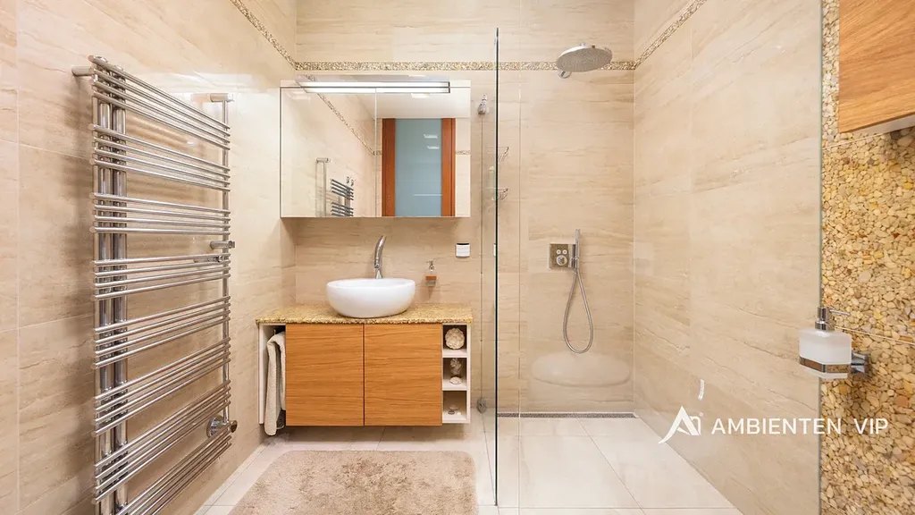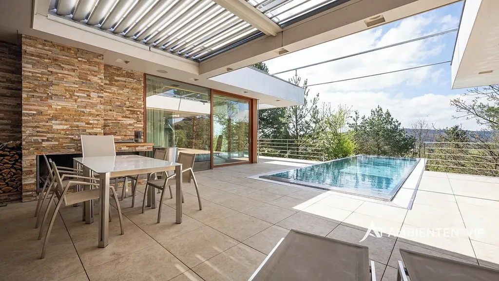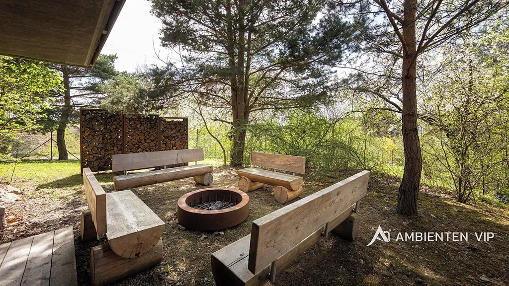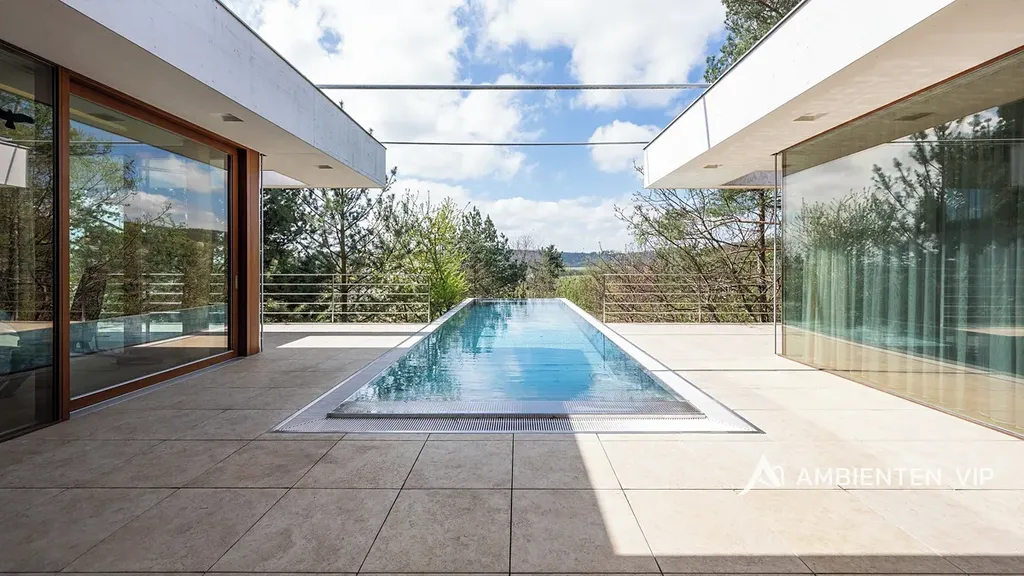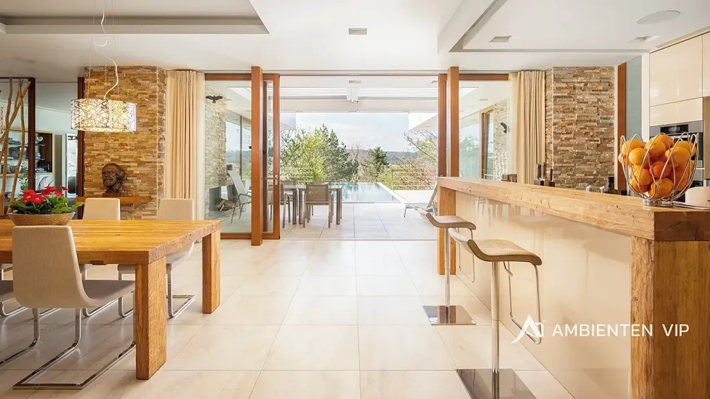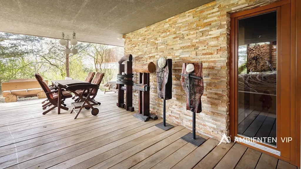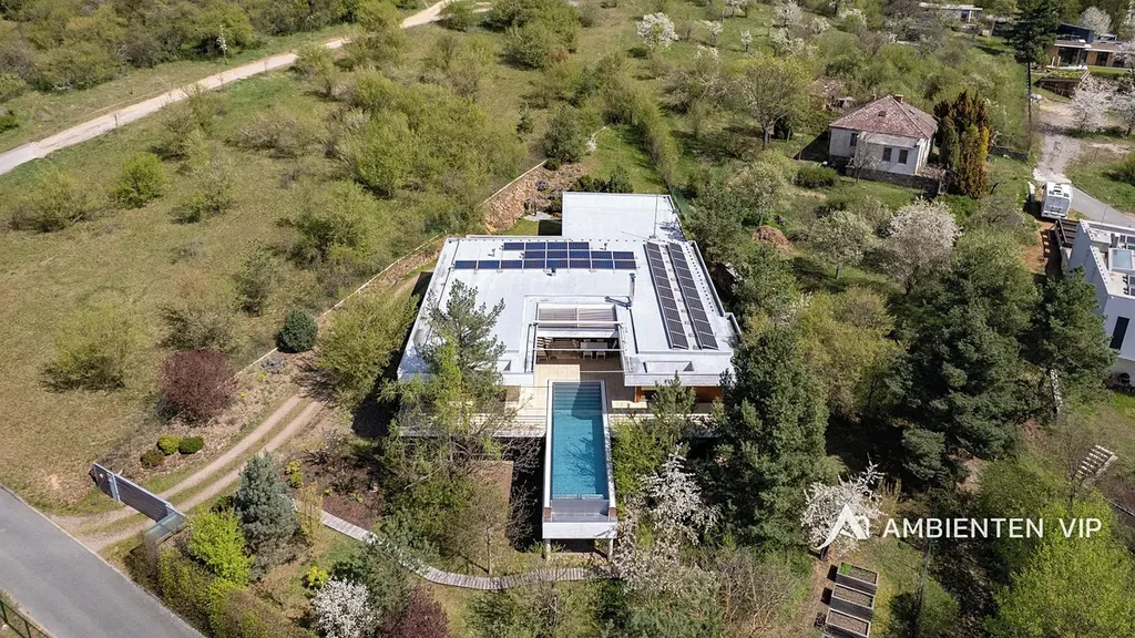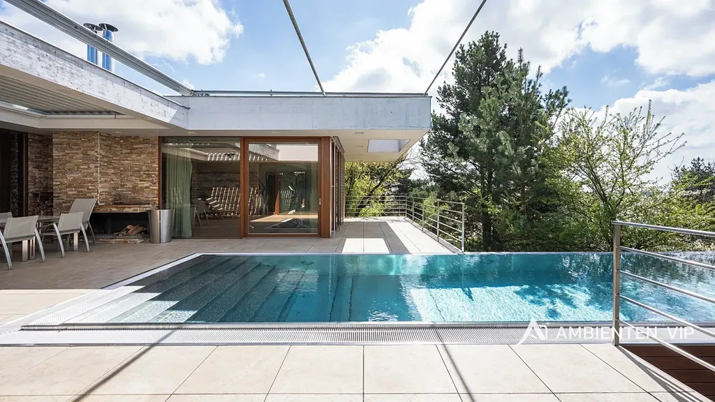 AMBIENTEN VIP si vám dovoluje výhradně nabídnout k prodeji luxusní samostatně stojící vilu v obci Lelekovice severně od Brna. Nemovitost je v perfektním technickém stavu bez nutnosti investic. Jedná se o atypický prodej nemovitosti, kdy majitelé nemovitosti prodávají vilu s pozemky, avšak za podmínky možnosti vilu užívat po dobu dalších dvaceti let. Nemovitost je určena klientům, kteří hledají vhodnou investiční příležitost uložení svých prostředků do této výjimečné nemovitosti, která je umístěna na kopci s výhledy. Nachází se uprostřed zeleně a přitom 10 min. jízdy k obchodnímu centru Globus. Majitelé garantují, že po dobu dalších dvaceti let budou provádět její údržbu, hradit veškeré energie a starat se o vilu tak, aby zůstala i nadále v perfektním technickém stavu do jejího finálního předání kupujícím. Lhůta dvaceti let není lhůtou finální, v časovém horizontu může být i kratší, je vázána na dožití majitelů v této vile. Předem uvádíme, že se nejedná o standardní prodej nemovitosti s možností okamžitého předání budoucím kupujícím po přepisu na katastru. Předání domu bude vázáno na dožití majitelů v tomto domě. Celková výměra pozemku činí 2.118 m2, podlahová plocha obytná má výměru 387,66 m2. Dům je naprosto výjimečný svým provedením a technickým stavem. Jeho poloha je vhodná pro klienty, kteří preferují klidnou lokalitu přímo u lesa a k tomu nádherné výhledy. Nemovitost je napojena na veřejný vodovod, kanalizaci a příjezd k ní je po asfaltové komunikaci. Zastávka autobusu je 700 m, vlaku 2 km, nájezd na rychlostní komunikaci Brno – Svitavy 2,5 km. Nemovitost je z roku 2013 a je provedena velice nadstandardně. Energetická třída vily je B. V suterénu vily se nachází společenská místnost, toaleta a technická místnost. V 1 NP dvojgaráž, přístřešek pro další vůz, dřevěný sklad, zádveří, vstupní chodba, koupelna s toaletou, pracovna, obývací pokoj s jídelnou a kuchyňským koutem, spíž, terasa s krbem a nerezovým bazénem o délce 12 m, technická místnost, toaleta a dvě ložnice a dále luxusní koupelna a šatny. K dispozici je projekt skutečného provedení, který souhlasí s faktickým stavem vily. Tvar nemovitosti je H. Stavba je zděná z keramických tvárnic tloušťka stěn 45 cm a obložena kamenným a dřevěným obkladem. Stropy jsou monolitické, střecha je plochá, střešní krytina je PVC fólie, okna jsou dřevěná Euro okna s izolačními dvojskly s venkovními žaluziemi, dveře jsou dřevěné masivní, podlahy jsou dřevěné a dále jsou zde dlažby s epoxidovou stěrkou. Topení je ústřední podlahové. Tepelné čerpadlo je země – voda. Jsou zde 3 vrty hl. 80 m, chlazené stropy, v obývacím pokoji krb. Dále je zde úpravna vody. Ve vile jsou celkem 4 umyvadla, 2 sprchové kouty, vana, tři toalety a dva bidety, centrální vysavač, EZS a EKS a systém chytré domácnosti. FVE 9,9 kWp s bateriovým úložištěm. V případě dalších upřesnění k vile a způsobu prodeje se na nás s důvěrou obraťte.