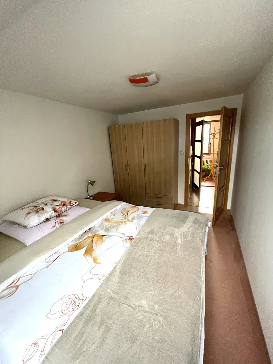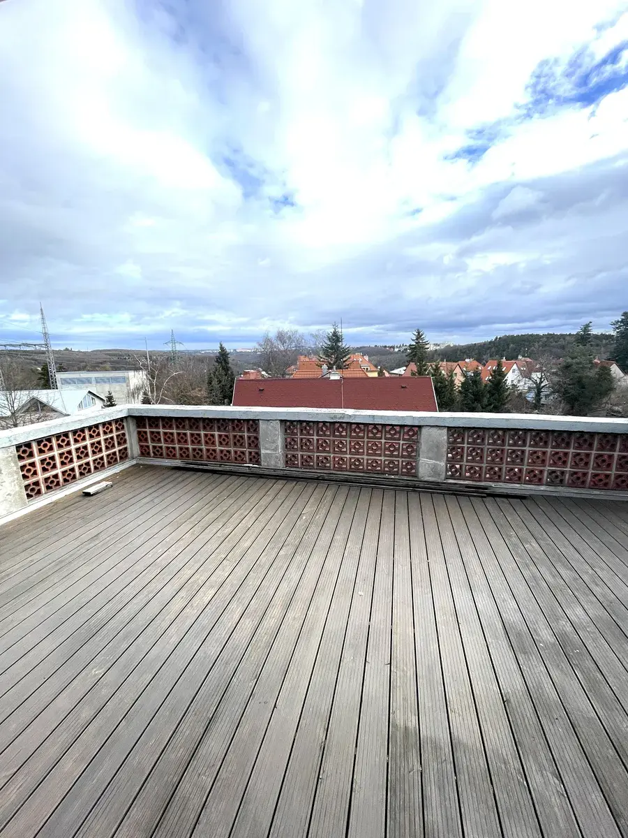 Tento velice světlý byt se nachází ve 2.patře rodinného domu. Do bytu se vchází přes byt majitelů domu. K bytu náleží terasa 30m2. Byt je plně vybaven. Internet v ceně. Majitelé preferují jako nájemce jednu osobu bez zvířat. Pro dvě osoby je cena o dva tisíce vyšší. Cena 16000,Kč včetně poplatků, pro dvě osoby 18000,Kč, vratná kauce 16000,Kč, odměna pro realitní kancelář 14000,Kč. Volný ihned.