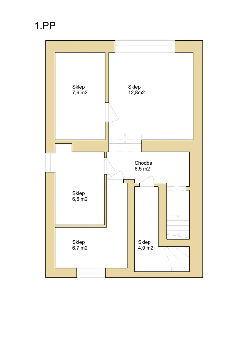 Dispoziční řešení: 1.PP (suterén) – sklep, prádelna, technická
