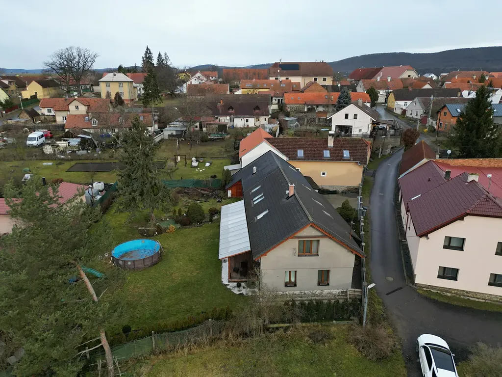 Před domem jsou k dispozici dvě parkovací místa s pojezdem po zámkové dlažbě ideální pro návštěvy nebo další členy rodiny. Dům je situován v okrajové části středu obce vybízející k procházkám a zároveň s dobrou dostupností občanské vybavenosti