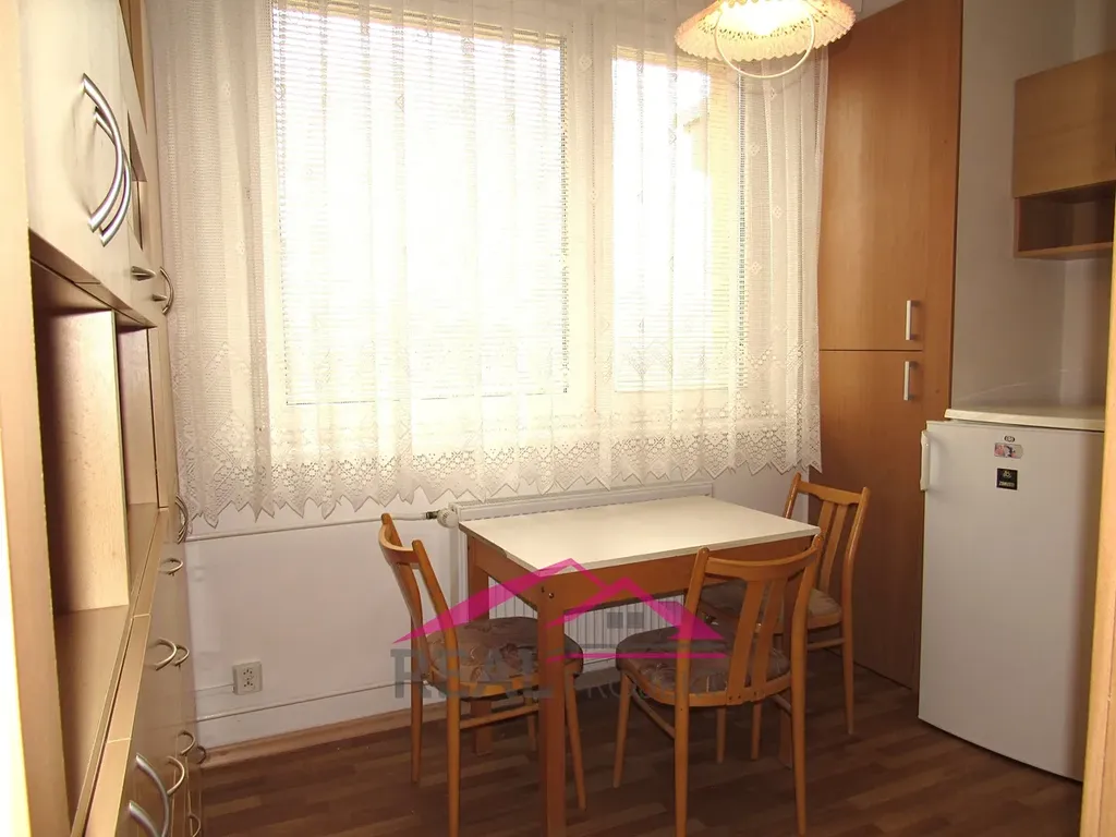 Byt je vybaven kuchyňskou linkou včetně varné desky a trouby, stolem s židlemi, vestavnou skříní, je zde možnost ponechání lednice a pračky.