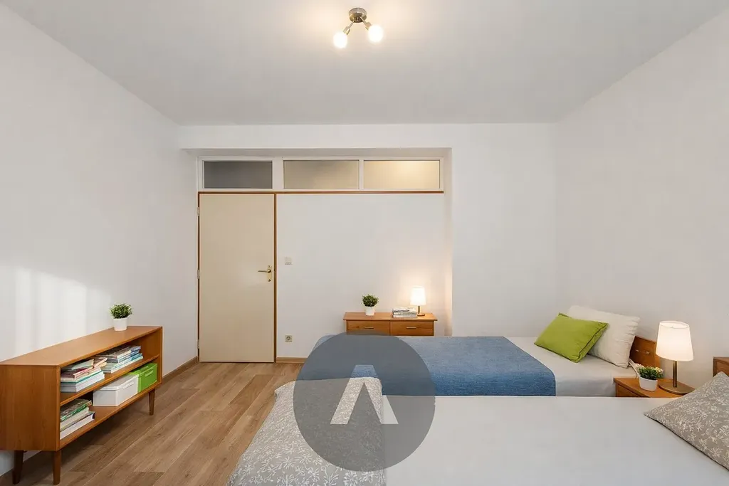 Dispozice nabízí dva samostatné pokoje s dostatkem prostoru pro rozdělení na více lůžek či studijních zón. Díky odděleným místnostem je možné nastavit režim spolubydlení tak, aby měl každý svůj klid na studium. Byt se nachází ve vyšším podlaží domu s výtahem a je orientován na východ a západ, takže je světlý během celého dne. Součástí je lodžie a zděný sklep.