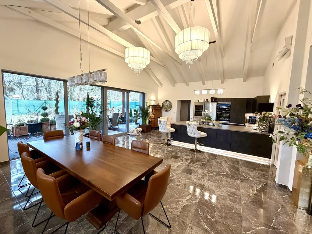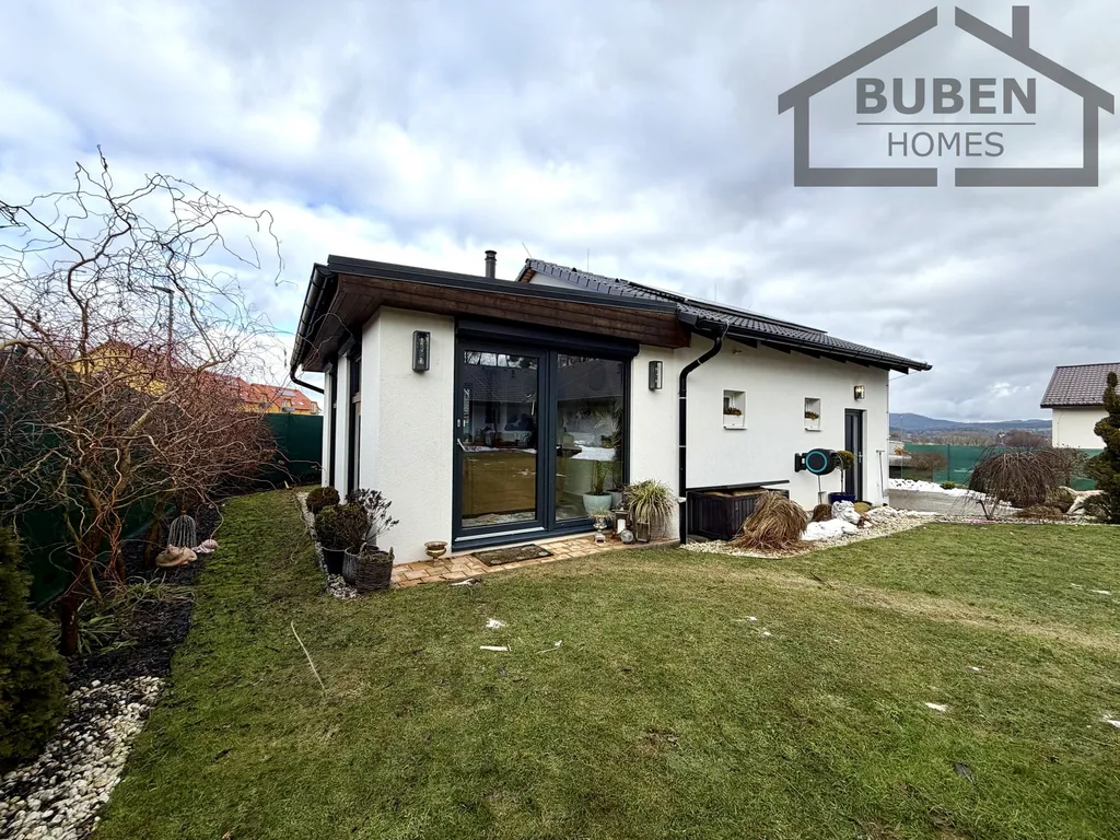 Předmětem prodeje je moderní, energeticky úsporný bungalov o užitné ploše domu 217 m² + 27 m² terasa a zastřešení vstupu). Celková výměra pozemků činí 1059 m². Z toho zastavěná plocha je o výměře 354 m² (dům 298 m², dvougaráž 56 m² + wellness), zahrada je o výměře 705 m².