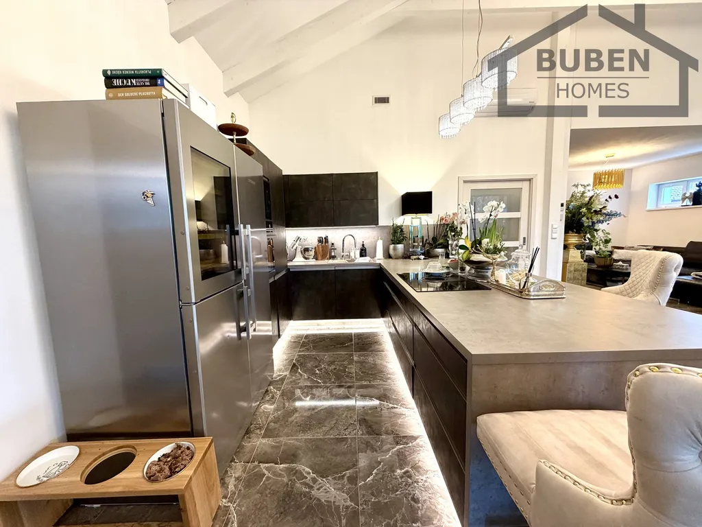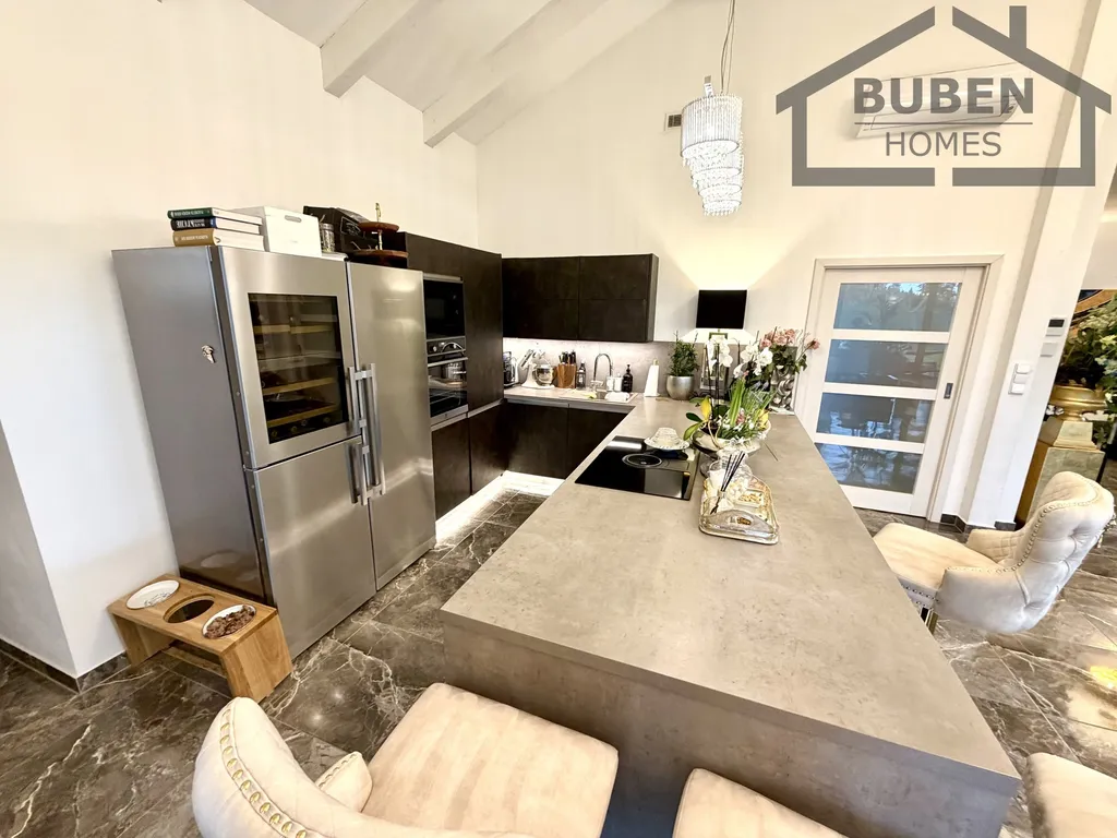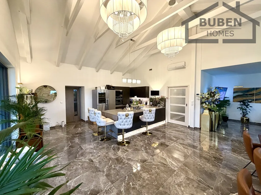 V ceně je zahrnuta kuchyňská linka včetně vestavěných spotřebičů (sklokeramická varná deska s digestoří, horkovzdušná trouba, mikrovlnná trouba, myčka a lednice s mrazákem), vestavěné skříně, koupelnový nábytek a kompletní osvětlení (mimo samostatně stojících lamp).