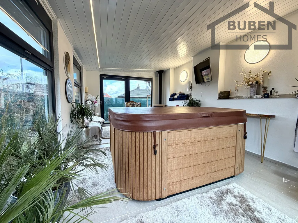Na garáž navazuje prosklené wellness (výstavba v roce 2024) s vířivou vanou, která je v ceně. Tento prostor je vytápěn krbem. Soukromí zajišťují venkovní rolety na dálkové ovládání.