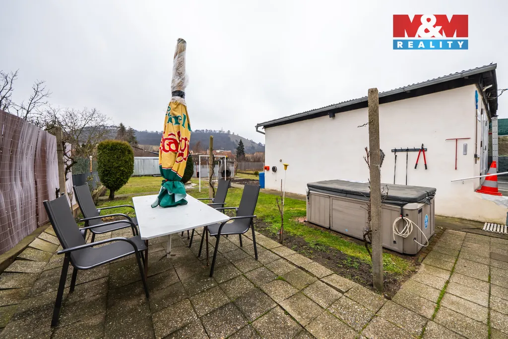 K nemovitosti náleží pět garáží, z nichž jedna samostatná je upravena jako dílna pro opravu automobilů včetně montážní jámy. Součástí je zahrada o výměře 574 m² se studnou využívanou k zavlažování a nerezová vířivka. Dům je vhodný pro vícegenerační bydlení i investiční využití, po úpravách také jako penzion nebo menší ubytovací zařízení.