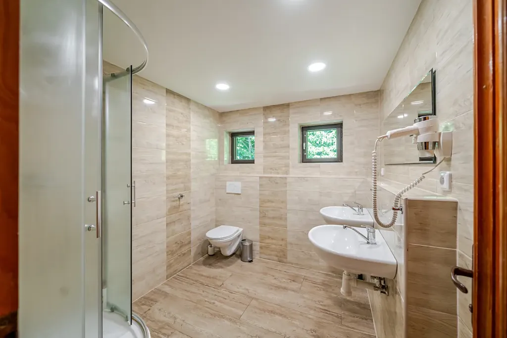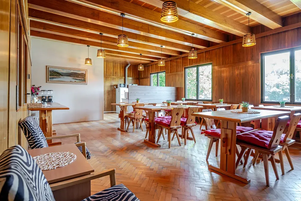 Jedná se o podsklepenou čtyřpodlažní zděnou budovu, která disponuje recepcí, zázemím restaurace včetně plně vybavené moderní kuchyně v nerezu se spotřebiči, jídelnou s obslužným barem, společenskou místností, vnitřním a venkovním posezením a ubytovací kapacitou 30 lůžek v deseti samostatných pokojích, z nichž některé mají terasu a samostatnou či sdílenou koupelnu.