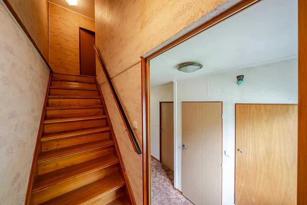 V podkroví je aktuálně jeden pokoj, další obytné místnosti je možné vybudovat v navazujícím prostoru.