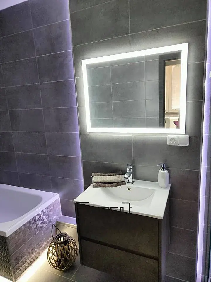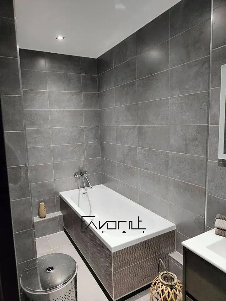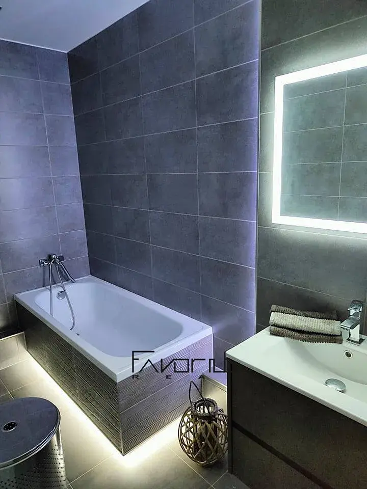 WC je zvlášť. TV stěna s nasvícením a přípravou pro TV a internet.