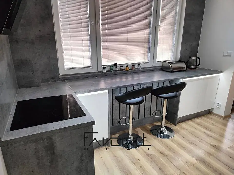 Byt zůstává z větší části zařízený (sedací souprava 2+1, šatní skříň, 2 barové židle, konferenční stolek, 2 regály, postel 140 x 200 cm).