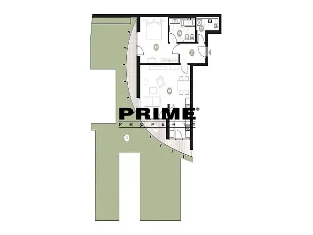 Dispozice bytu: vstupní předsíň, obývací pokoj (35m2) s jídelní částí a s otevřenou, plně vybavenou italskou kuchyní se spotřebiči (indukční varná deska, elektrická trouba, lednice s mrazákem, myčka a mikrovlnná trouba), nádobím a kuchyňským náčiním a vstupem na terasu a zahrádku, ložnice (18m2) se vstupem na terasu a zahrádku, koupelna (vana se sprchovou zástěnou, umyvadlo, toaleta, bidet) a samostatné WC. Dřevěné podlahy a velkoformátová dlažba. Rekuperace vzduchu, podlahové topení, internet, videotelefon, alarm.