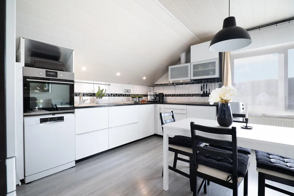 Ve druhém podlaží se nachází kuchyně s obývacím pokojem, několik dalších samostatných pokojů, koupelny a místnosti využitelné jako ložnice, dětské pokoje, pracovny či pokoje pro hosty. Díky uspořádání podlaží lze dům velmi dobře rozdělit na více samostatně fungujících částí, což zvyšuje jeho flexibilitu a využitelnost.
