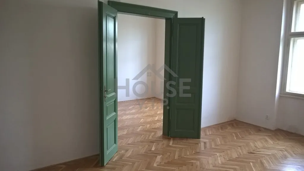 Elegantní parketové podlahy podtrhují charakter interiéru a vysoké stropy 3.20 m umocňují prostorovou svěžest.