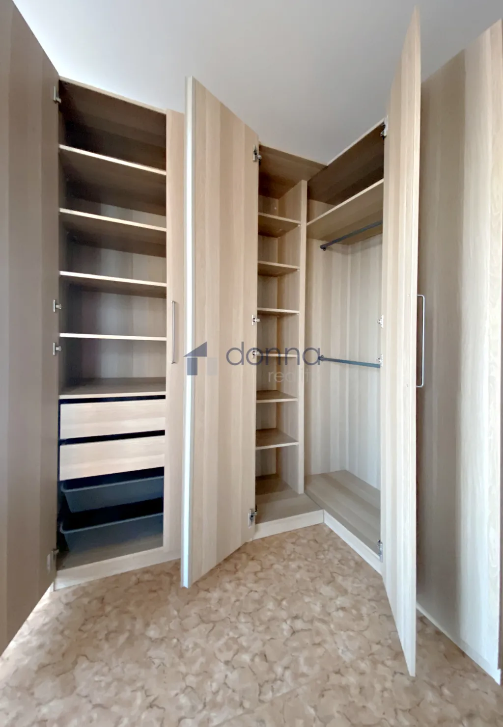 Vybavení: kuchyňská linka vč. indukční varné desky a pečící trouby, skříňka na potraviny, velké šatní skříně umístěné v ložnici a vysoká skříňka v koupelně. Další úložný prostor nabízí velká komora.