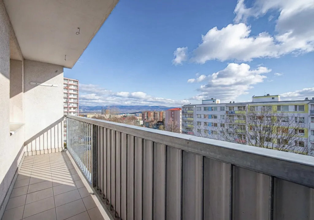 Byt je dispozičně veden jako 4+1, v minulosti byla odstraněna příčka mezi kuchyní a jedním pokojem, takže dnes prostor fakticky odpovídá dispozici 4+kk (otevřený obývací prostor s kuchyní). Dispozice dále nabízí předsíň, tři samostatné pokoje a koupelnu. Velkým benefitem je prostorná lodžie přes dva pokoje. Praktická je také komora na chodbě před bytem, vhodná pro uložení věcí.