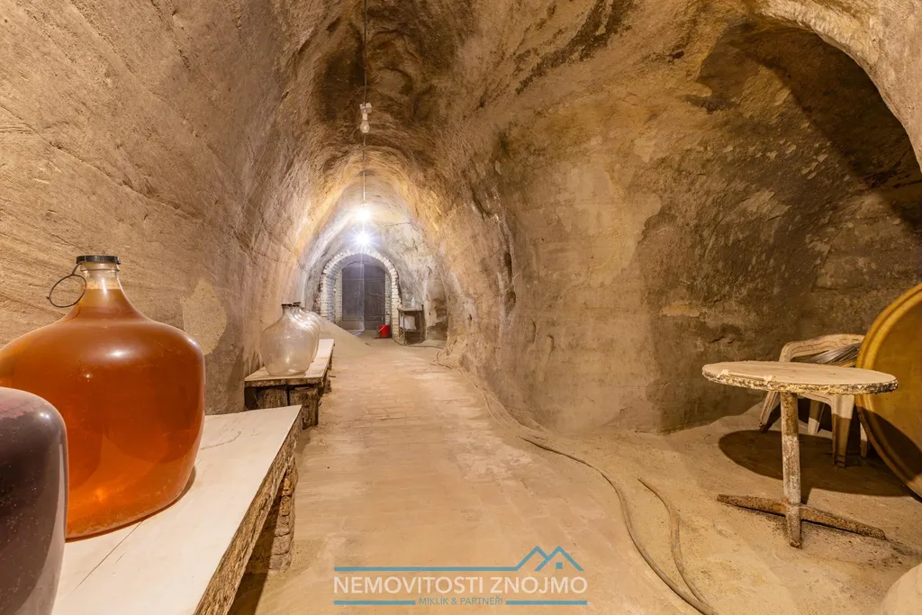 Sklepní prostor je ražen v pískovci, délka sklepa je přibližně 20 m. Součástí jsou dva vyražené výklenky, které lze využít pro archivaci vín nebo jako soukromé posezení přímo ve sklepě.