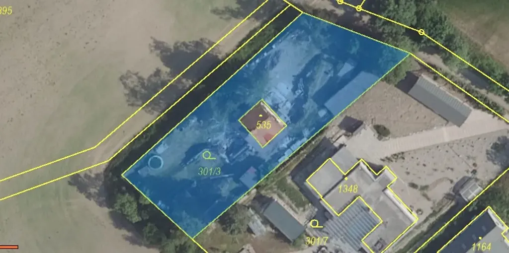 Budova s číslem evidenčním 102 stojí na pozemku č. 535, výměra 52 m2 - zastavěná plocha a nádvoří, parcela č. 301/3, o výměře 1094 m2, vedená jako zahrada, katastrální území Davle.