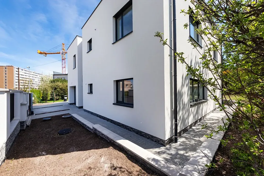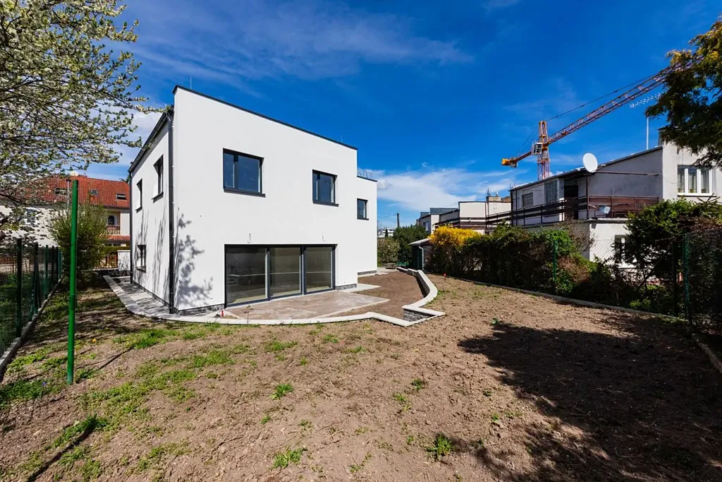 Nová moderní vila dispozičně řešená jako 5+kk se dvěma koupelnami, garáží a kompletně realizovanou zahradou včetně venkovní terasy.