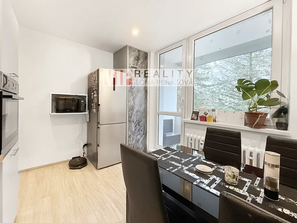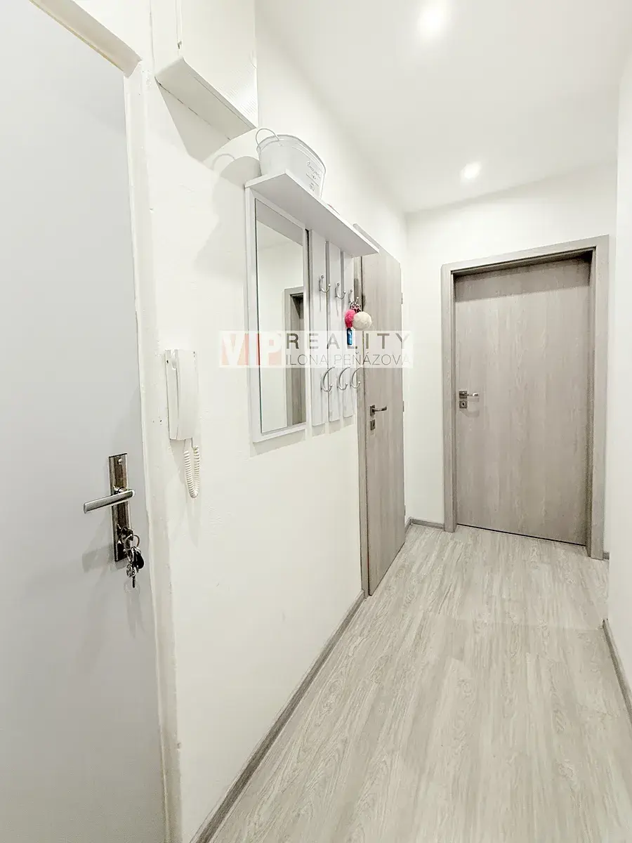 Byt má neprůchozí pokoje a praktickou dispozici. Z prostorné předsíně jsou samostatné vstupy do obou pokojů, kuchyně, koupelny s WC a také do velké komory, která poskytuje nadstandardní úložný prostor. Z kuchyně je přímý vstup na lodžii orientovanou do zeleně, což zajišťuje příjemné soukromí i klidné posezení.