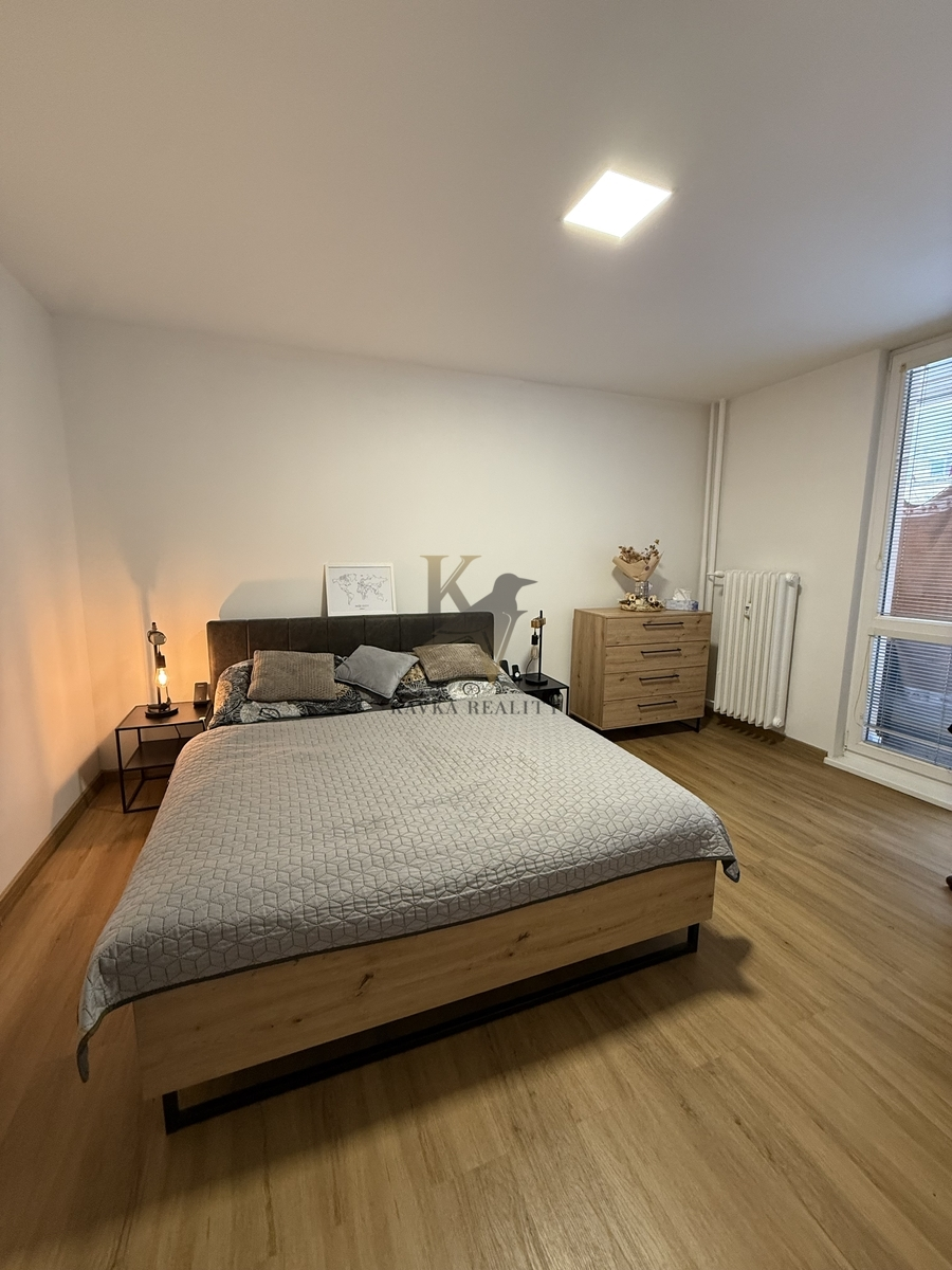 Součástí vybavení je také , postel s rošty , nočními stolky , komodou , sedací souprava s konferenčním stolkem , tv stolkem s úložným prostorem , vestavěná skříň v chodbě a udělaná prostorná šatna , kterou určitě uvítá a ocení každý najemnik.