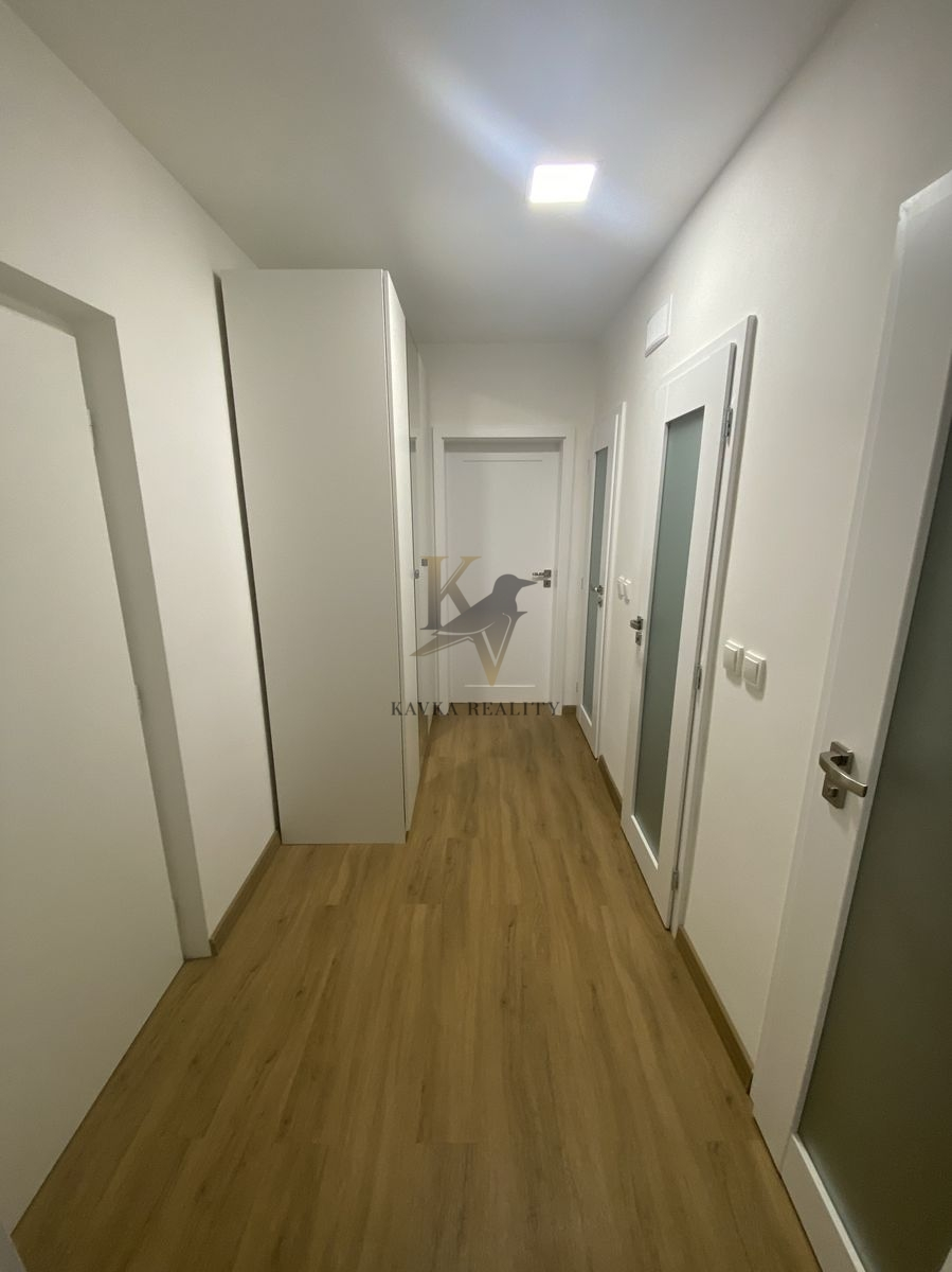 Je po kompletně moderní a krásné rekonstrukci včetně nové rohové kuchyňské linky s elektrospotřebiči ( sklokeramická indukční deska s horkovzdušnou troubou a odsavačem par, vestavěnou lednici, myčku a zabudovanou mikrovlnou troubou ) koupelna a WC zděná- rekonstruovaná- kde se nachází velký sprchový kout a přívod na pračku , která může byt součástí vybavení. Vinylová podlaha se nachází v kuchyni , chodbě a zbylých dvou pokojích, dlažba je v koupelně a na Wc .