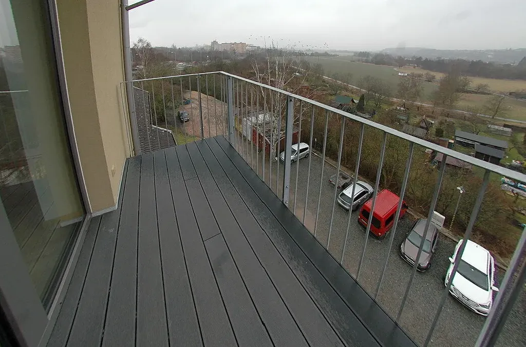 Nabízíme k pronájmu mezonetový (dvoupatrový) byt 3+KK v nově provedené nástavbě na kompletně rekonstruovaném domě v Plzni, Skvrňanská ulice. Plocha bytu je 78,2 m2, k bytu náleží balkon o výměře 3,9 m2 a dále terasa o výměře 6,4 m2, příslušenství tvoří prostorný sklep umístěný v suterénu. K bytu si lze samostatně navíc pronajmout venkovní parkovací stání (800 Kč/měs). Byt je atraktivní svým dvoupodlažním řešením, v přízemí je k dispozici kuchyňský kout s jídelnou, pokoj s balkonem, WC a koupelna, komora, v patře pak najdete obývací pokoj, ložnice s terasou. Kuchyně je vybavena lednicí, sporákem s varnou deskou. Z terasy se naskýtá široký výhled do okolní krajiny směrem na Radčice, údolí řeky Mže. Terasa je vybavena zásuvkou, v létě je zde možnost zapojení elektrického grilu. Vnitřní schodiště prostor ozvláštňuje a samo o sobě tvoří zajímavý interiérový prvek. Podlahy plovoucí. Dům se nachází v lokalitě, která propojuje střed města a okrajovou zónu s množstvím zeleně. Dům je situován na konci Skvrňanské ulice, centrum města je vzdáleno pouhých 800 metrů, zastávka tramvaje vzdálena 100 m od domu, oblíbené nákupní centrum Plaza 400 metrů. V místě jsou jedinečné možnosti pro sportování i bezpečné vyžití pro děti. Bytový dům nabízí svěží a moderní bydlení. Vytápění dálkové, v celém bytě je pro vyšší komfort příjemné podlahové topení s centrálním ovládáním. Ohřev TUV prostřednictvím el. bojleru. Koupelna je vybavena sprchovým koutem, samozřejmostí je provedená příprava na umístění pračky. Předsíň je vybavena šatní skříní a botníkem na míru. Dům není vybaven výtahem, byt se nachází ve 4.NP, je třeba s touto skutečností předem počítat. Sklep je dostatečně prostorný, zděný. Energetická třída stanovena jako G, PENB který by tento údaj zpřesnil, zatím není k dispozici.