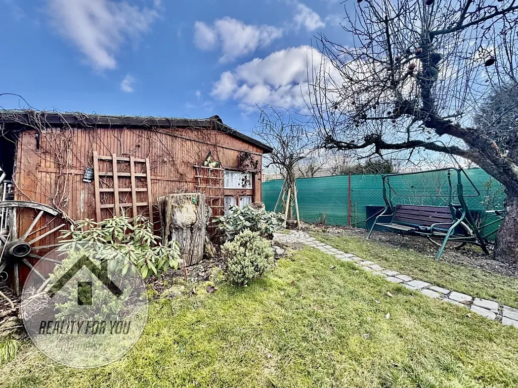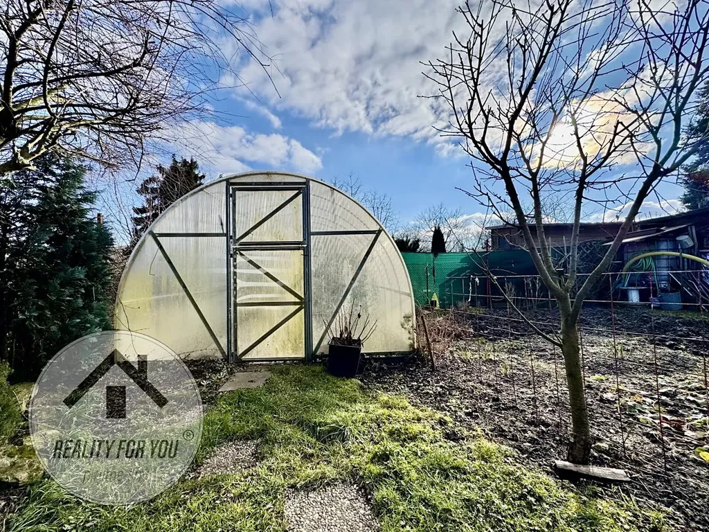 Zahrádka o výměře ca. 360 m2 je rovinatá a kompletně oplocena. Uprostřed pozemku je umístěna chatka, která původně vznikla z vagónu. Stavba chatky je ve velmi dobrém technickém stavu a nabízí obývací pokoj s možností přespání, menší kuchyňku a sklípek. V centrální části zahrady je velká terasa s černou venkovní kuchyní - ideální pro grilovačky, posezení s přáteli a rodinou či k relaxaci. V zadní části stavby je technika část (sklad) o výměře cca 10 m2.