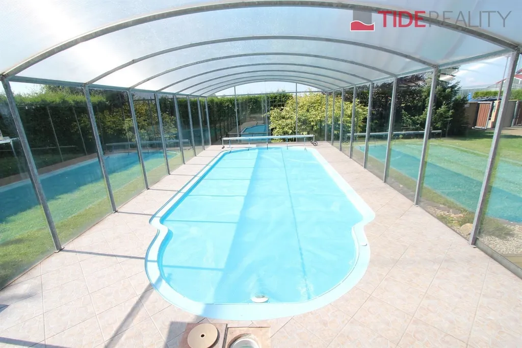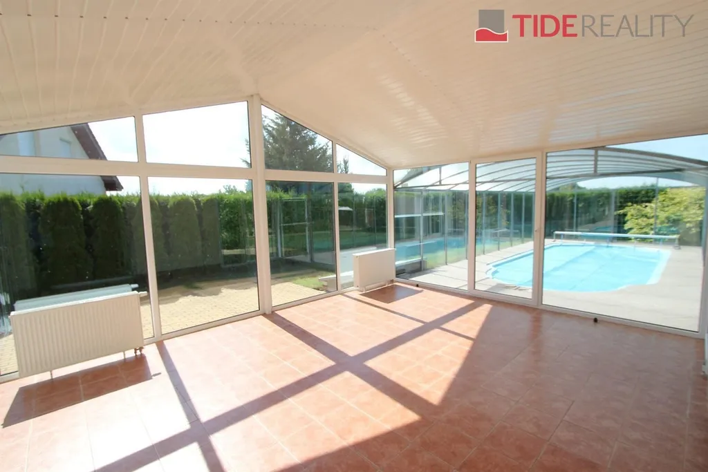 Velice pěkný prostorný a nezařízený dům (6 + 1, 290 m2) s velkou zahradou (711 m2) nabízí 5 ložnic, obývací pokoj s krbem, velkou zimní zahradu a terasu, krytý bazén, plně vybavenou kuchyň, 3 koupelny. Podlahové topení, vestavěné skříně, nízké náklady na vytápění (tepelné čerpadlo), garáž pro 2 auta. PENB třída C. Vhodné pro rodiny s dětmi, uprostřed krásné přírody s dobrou dostupností do centrální Prahy. Nájemné 69.900, Kč / měsíc. Zálohy na služby a energie 14.000, Kč/ měsíc jednou ročně zúčtovatelné dle skutečné spotřeby Nájemce. Volné od dubna 2026.