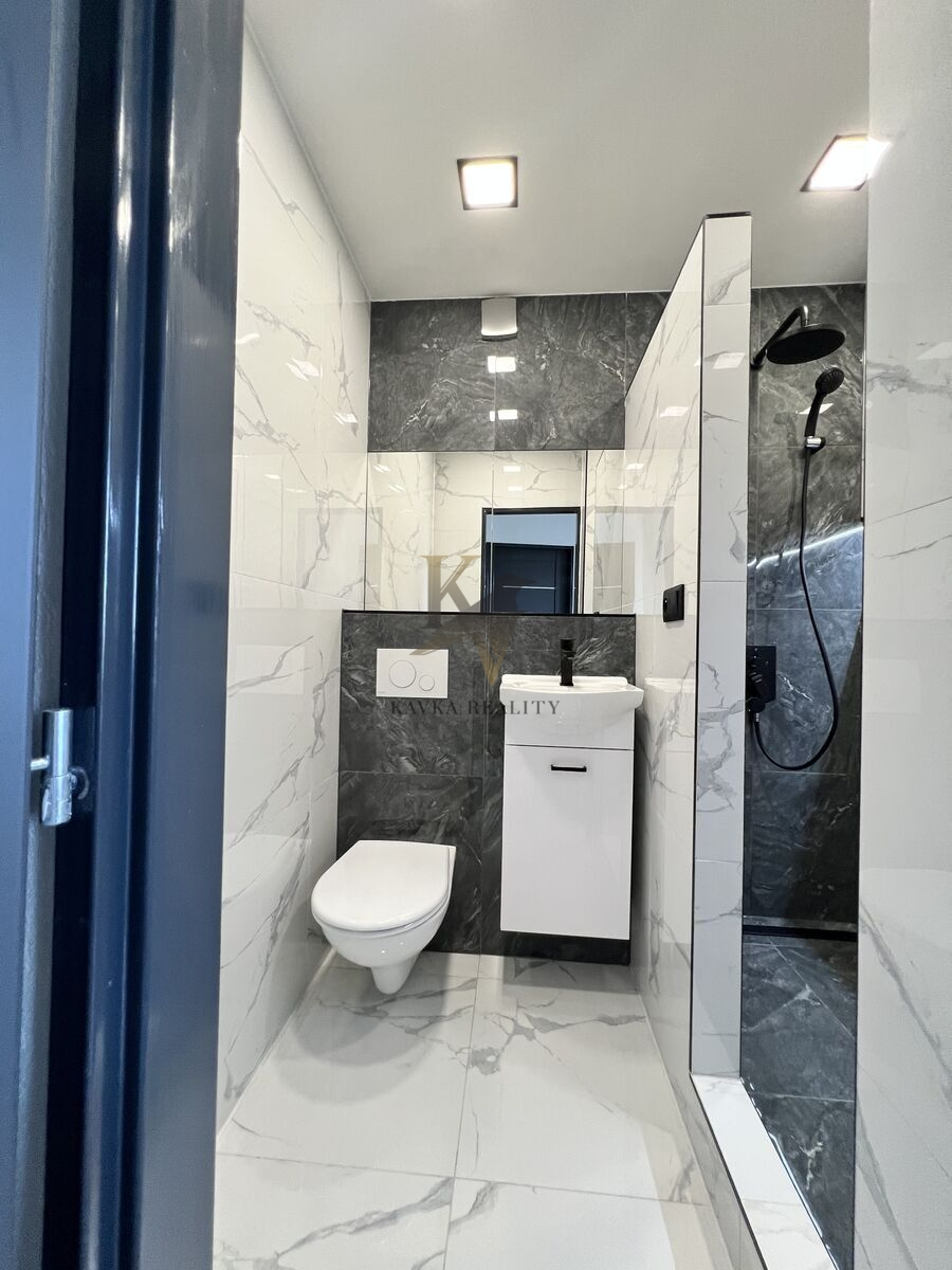 Je po kompletně moderní a nadčasově krásné rekonstrukci včetně nové kuchyňské linky s elektrospotřebiči ( sklokeramická varná deska s vestavěnou horkovzdušnou multifunkční troubou a odsavačem par vše kvalitní značky Gorenje a Whirlpool . ) Celá kuchyňská linka je v pěkném podsvícení , zabudovaného led pásku, který mění barvy. Koupelna a WC je zděná- rekonstruovaná- kde se nachází velký zděný sprchový kout osvětlený nikou s dekorativními policemi , ( ve sprše většinou poslouží jako neocenitelný úložný prostor pro šampon nebo sprchový gel, ve stěnách mimo ně slouží spíše jako police a má funkci dekorační – krásně se tady budou vyjímat květiny nebo třeba suvenýry z cest, či ručníky .) hranaté umyvadlo se skříňkou a zrcadlo zapuštěné v obkladu . Wc je závěsné značky Geberit . Krásná a kvalitní mramorová dlažba se nachází v kuchyni , chodbě v koupelně a na Wc . Ve zbylém pokoji se nachází plovoucí podlaha .