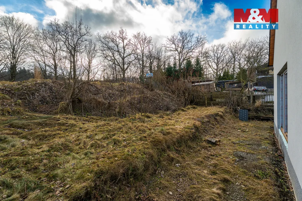 Pozemek nabízí dostatek prostoru pro vybudování garáže, dílny či dalších přístaveb dle Vašich potřeb.