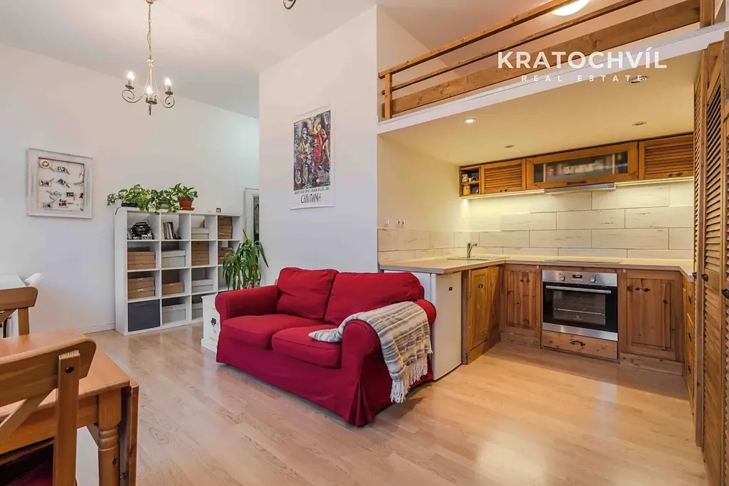 Hlavní výhodou tohoto bytu jsou vyšší stropy a vestavěné patro na spaní, což zvětší plochu bytu. V koupelně je sprchový kout, místo pro pračku se sušičkou, na podlaze jsou plovoucí podlahy a dlažba.