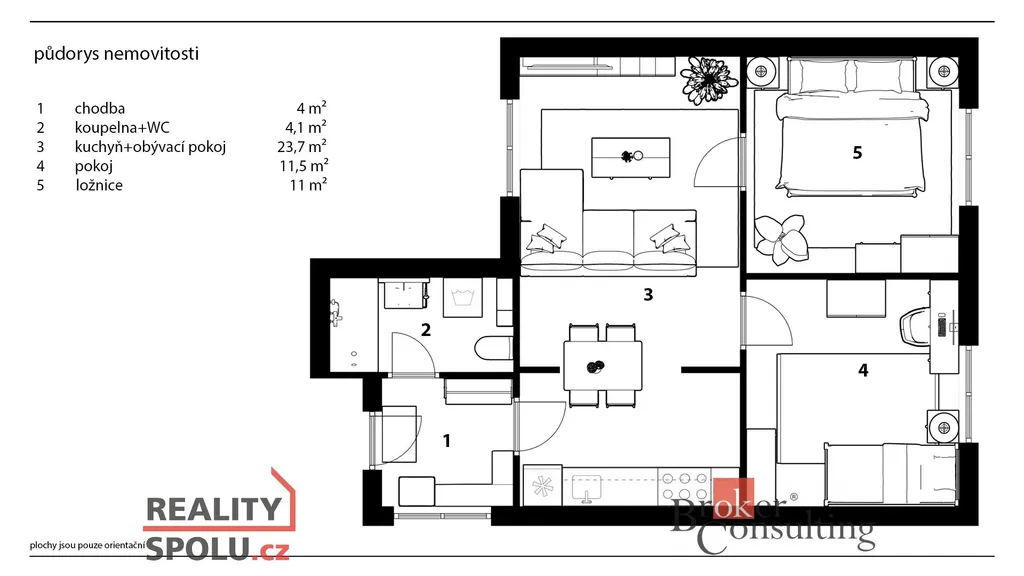 • dispozice 3 pokoje