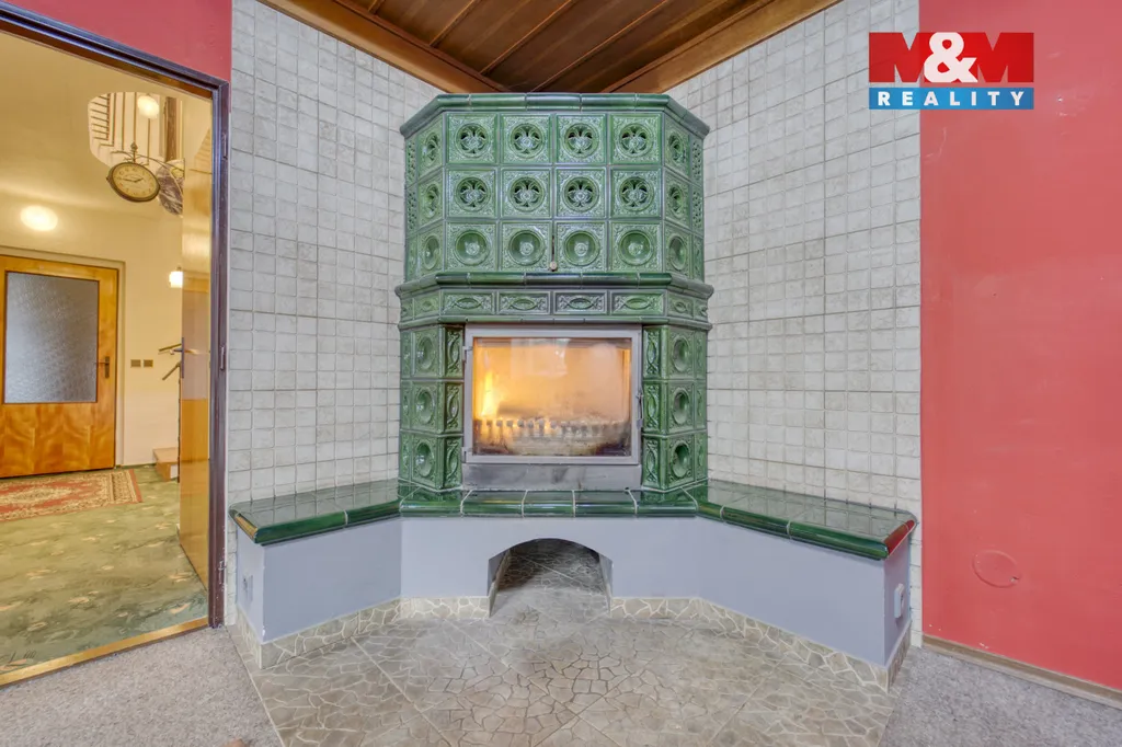 Vytápění je řešeno kombinací plynového topení a krbových kamen, která dodávají interiéru příjemnou atmosféru a zároveň umožňují flexibilní a úsporný provoz domácnosti.