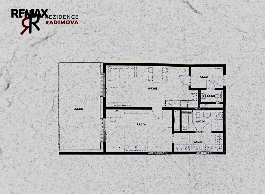Byt se nachází v 8. patře nového exkluzivního domu Rezidence Radimova. Jedná se o jediný byt této dispozice 2+kk v celém projektu, situovaný v nejvyšších podlažích určených pro penthousy (8.–9. patro).