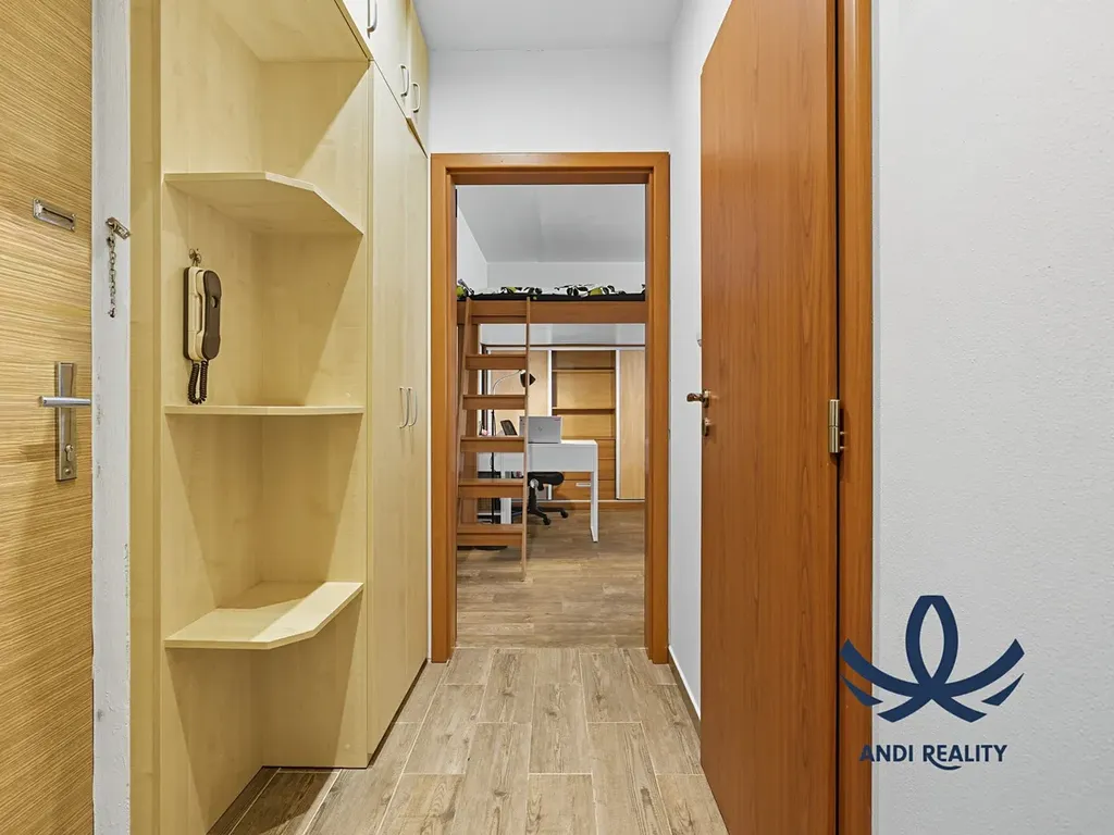 Nachází se v šestém patře panelového domu s výtahem. Světlý obývací pokoj 100 % využitý díky vyvýšenému spaní, které zajišťuje prostor pro pracovní či herní kout.