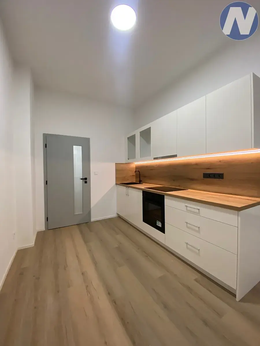Světlý a prostorný byt o dispozici 2+kk se nachází se v nově zrekonstruovaném a energeticky velmi úsporném domě, v docházkové vzdálenost od centra města a vlakového i autobusového nádraží. Celý dům i byt jsou po kompletní rekonstrukci. Dům je zateplený. V bytě je nová kuchyňská linka vč. všech spotřebičů, nové podlahy dveře, okna. Koupelna se sprchovým koutem, umyvadlem, toaletou a prostorem pro pračku a sušičku je v moderním nadčasovém designu. Vstupní chodba je dostatečně prostorná pro umístění šatní skříně nebo botníku. Do bytu je přiveden optický internet. K bytu patří prostorný zděný sklep.
