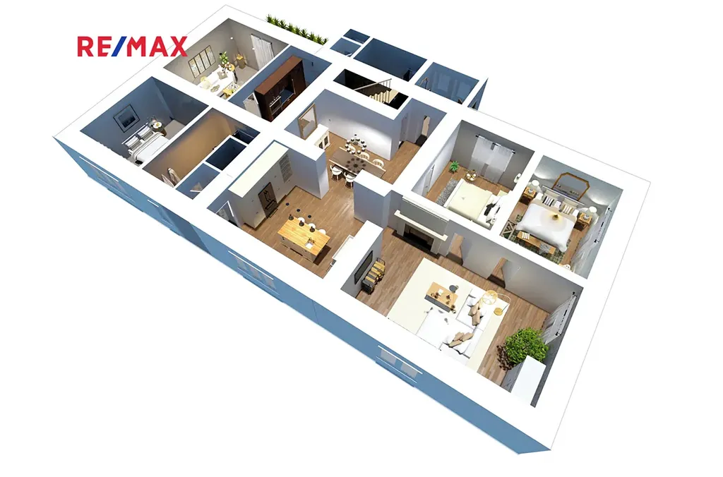 Aktuální dispozice nabízí celkem pět rozměrných pokojů, dvě kuchyně a dvě koupelny s WC. Ihned tak můžete využít přes 280 m² užitné plochy, případně celou délku půdního a plně pochozího prostoru. Rekonstrukce již proběhla ve veliké části budovy, včetně nových plastových oken, rozvodu elektřiny, vody, odpadů, zabezpečovacího zařízení i systému vytápění, které je variabilní výhřevem solárními panely, nebo velkokapacitním kotlem na tuhá paliva. Kotel je vybaven objemným automatickým zásobníkem na 2-3 měsíce a přijímá různé druhy paliva: biomasu, pelety, štěpky a elektrárenské uhlí.