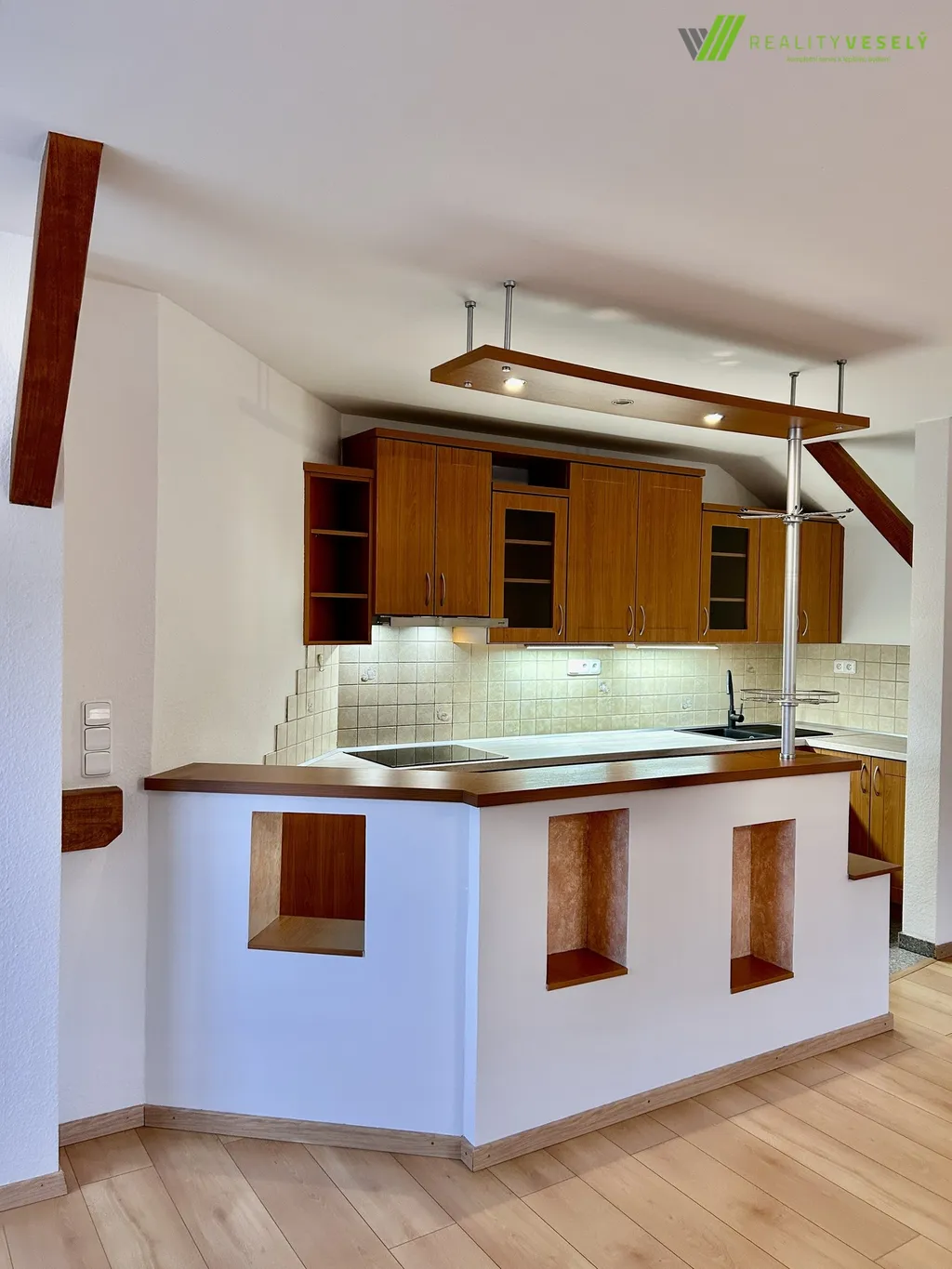 Nabízíme k pronájmu prostorný a útulný podkrovní byt 2+kk o výměře 75 m² ve Veselí nad Moravou, umístěný ve 2. NP. Byt se nachází v těsné blízkosti centra města a nedaleko kompletní občanské vybavenosti. Je po velmi zdařilé kompletní rekonstrukci a k nastěhování bude připraven od 1. 3.