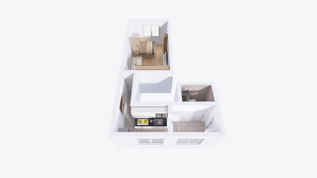 V bytě naleznete předsíň s botníkem navazující na kuchyňskou linku se sklokeramickou varnou deskou, el. troubou, digestoří a prostorem pro pračku (s bočním otvíráním) a lednici. Koupelna je vybavena vestavným sprchovým koutem, umyvadlem a WC. Ohřev vody je zajištěn pomocí el. bojleru, který v kombinaci s el. kotlem přímo v bytě a zateplením domu zajišťuje nízké provozní náklady. Zálohy na spotřebu el. energie si navíc nájemník přepisuje na sebe, takže máte maximálně transparentní přehled o své spotřebě a můžete tak lépe regulovat výši záloh dle aktuální spotřeby.