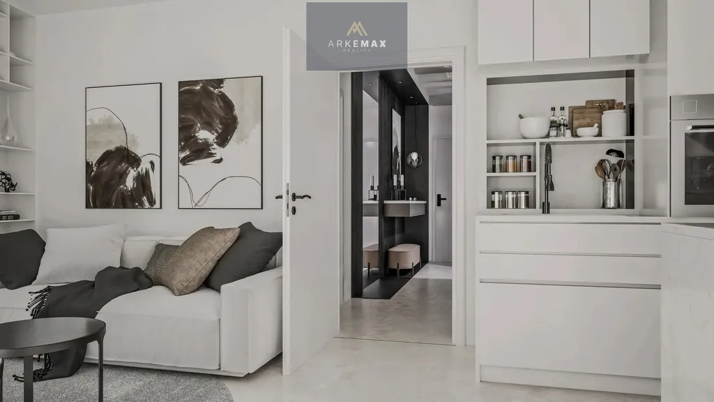 Velkorysý obývací prostor s přímým vstupem na balkón poskytuje dostatek místa pro jídelní část i pohodlnou obývací zónu. Praktickým benefitem je samostatná šatna, která výrazně zvyšuje komfort užívání bytu.