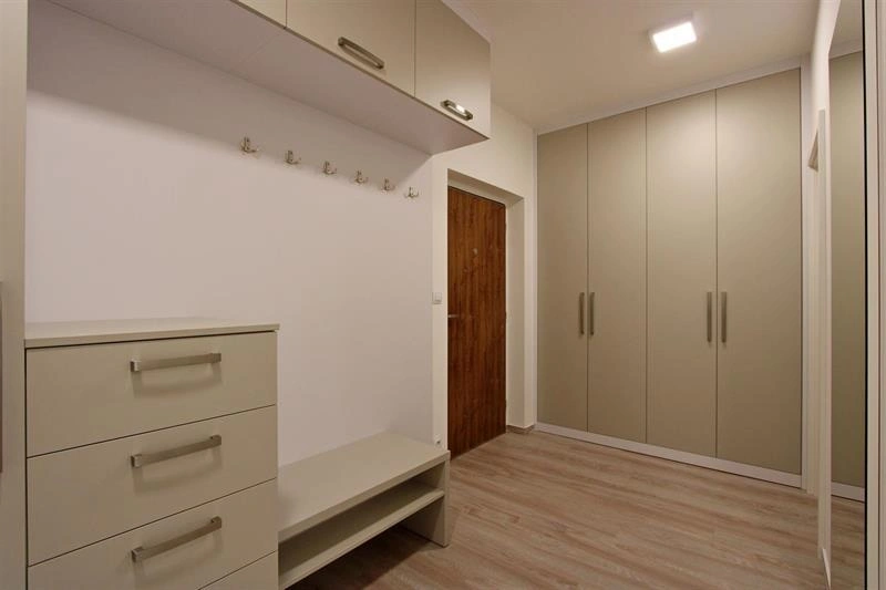 Velkou výhodou bytu jsou úložné prostory v celém bytě - šatna a dvě vestavné skříně na chodbě.