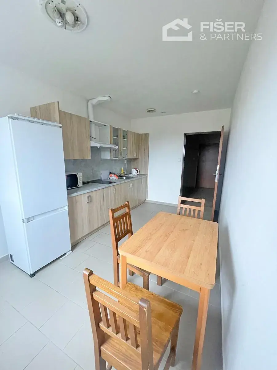 Nabízím Vám k pronájmu tento apartmán o dispozici 1+00 s užitnou plochou 20m2. Tento byt je plně vybaven a zařízen nábytkem včetně povlečení, ručníků. Stačí se pouze nastěhovat. Na společné chodbě je spolu s dalším apartmánem sdílená nová kuchyňská linka s ledničkou. Byt se nachází v cihlovém bytovém domě, ve kterém je k dispozici prádelna s pračkou včetně sušičky na prádlo. Je zde také možnost využít pergoly na posezení s grilem. V ceně je také 1 parkovací stání.