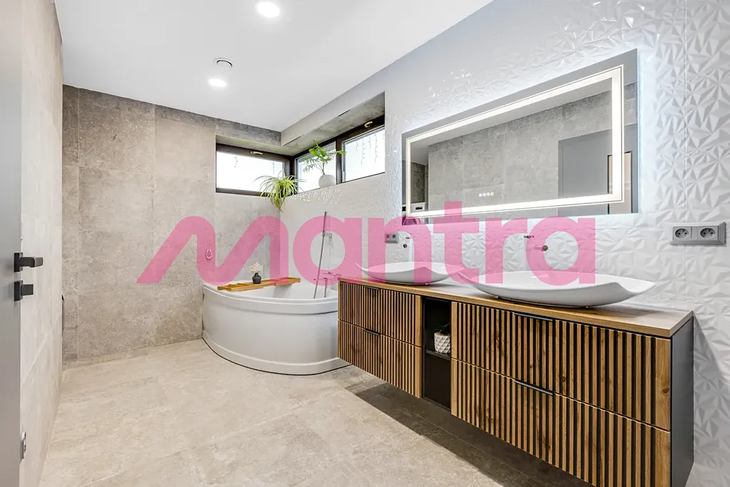 Tato moderní novostavba 5+kk v obci Úhonice spojuje čistou architekturu, kvalitní materiály a špičkové technologie do harmonického celku. Nachází se v nové rezidenční čtvrti tvořené výhradně novostavbami a nabízí klidné rodinné bydlení jen pár minut od Prahy.