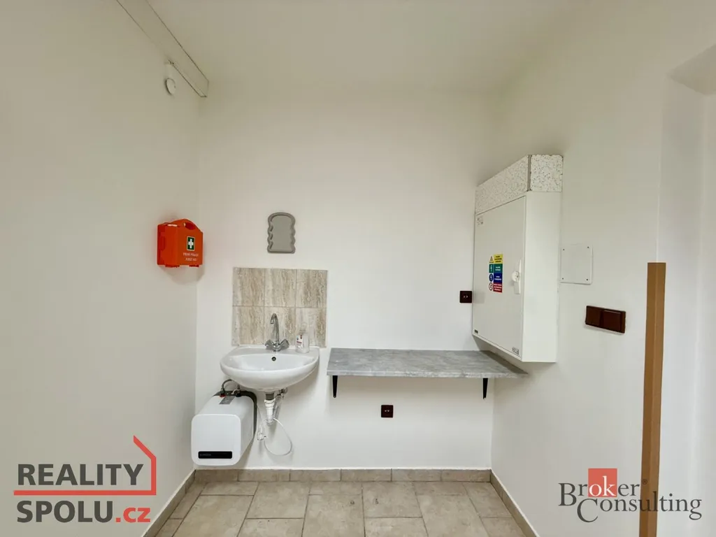 Prostor je čistý, vymalovaný a připravený k užívání. Je vybaven automatickými posuvnými vstupními dveřmi s odděleným vstupem a výstupem, kamerovým systémem, klimatizací a ústředním elektrickým vytápěním.