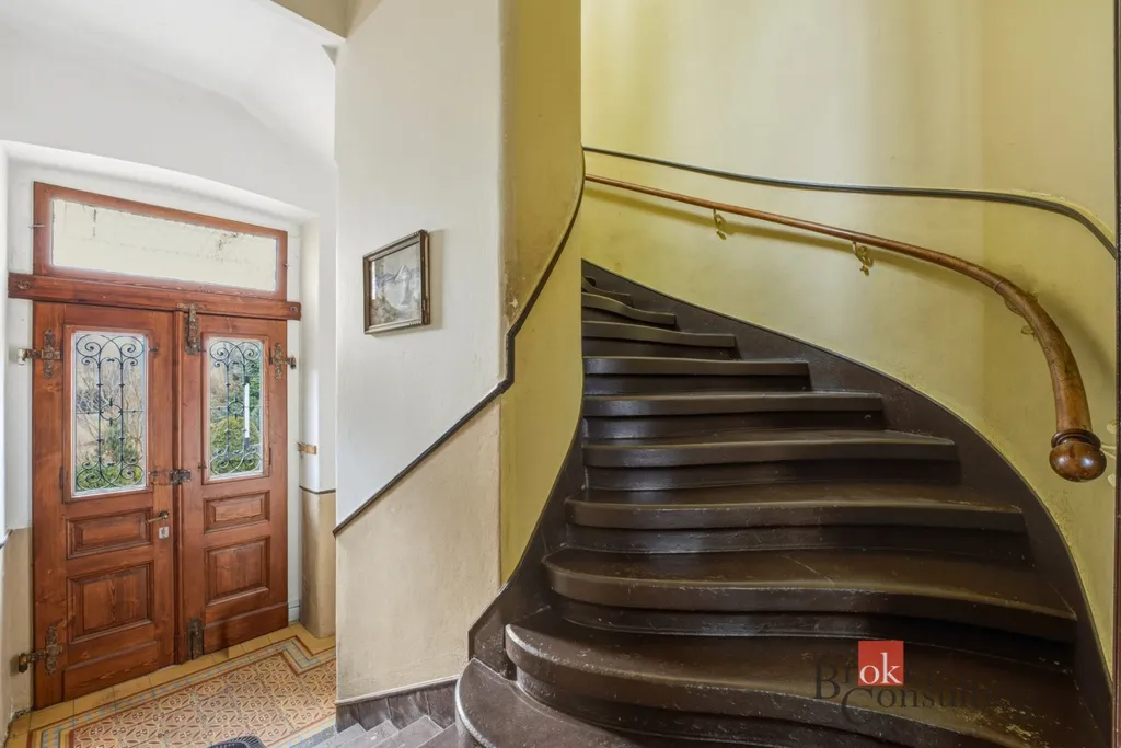 Dům nabízí velkorysé místnosti, vysoké stropy a dostatek denního světla. Jedná se o masivní zděnou stavbu s výraznou architekturou.
