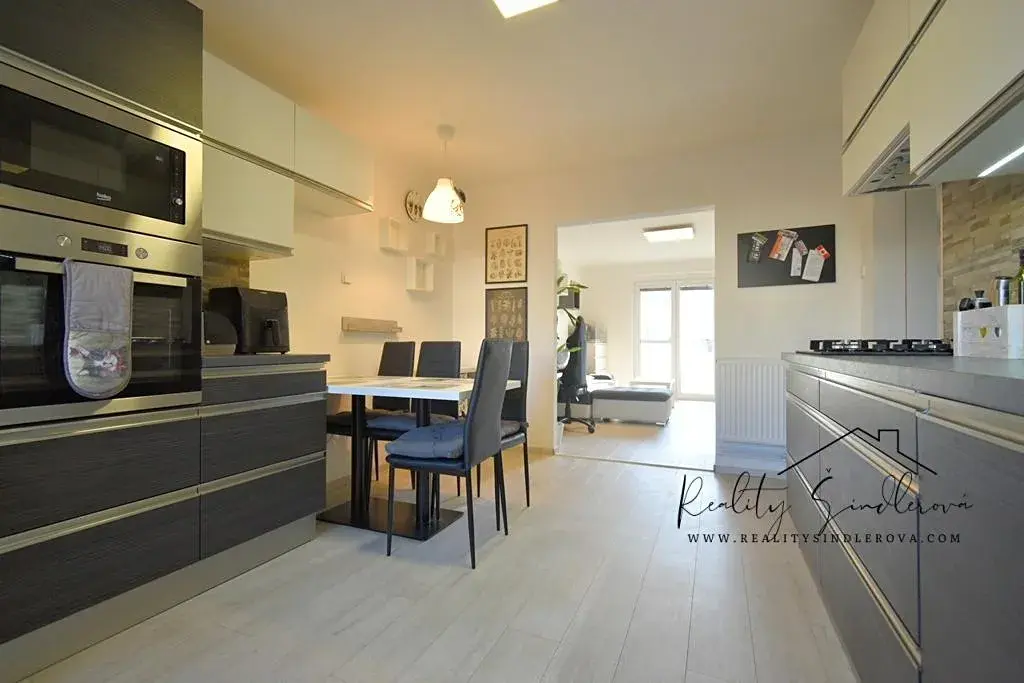 Kuchyně: Kuchyňská linka s vestavnými spotřebiči (myčka, vest. trouba, plynový sporák, vest. mikrovlnná trouba. Lednice a bílý policový kallax nejsou součástí vybavení - viz. foto